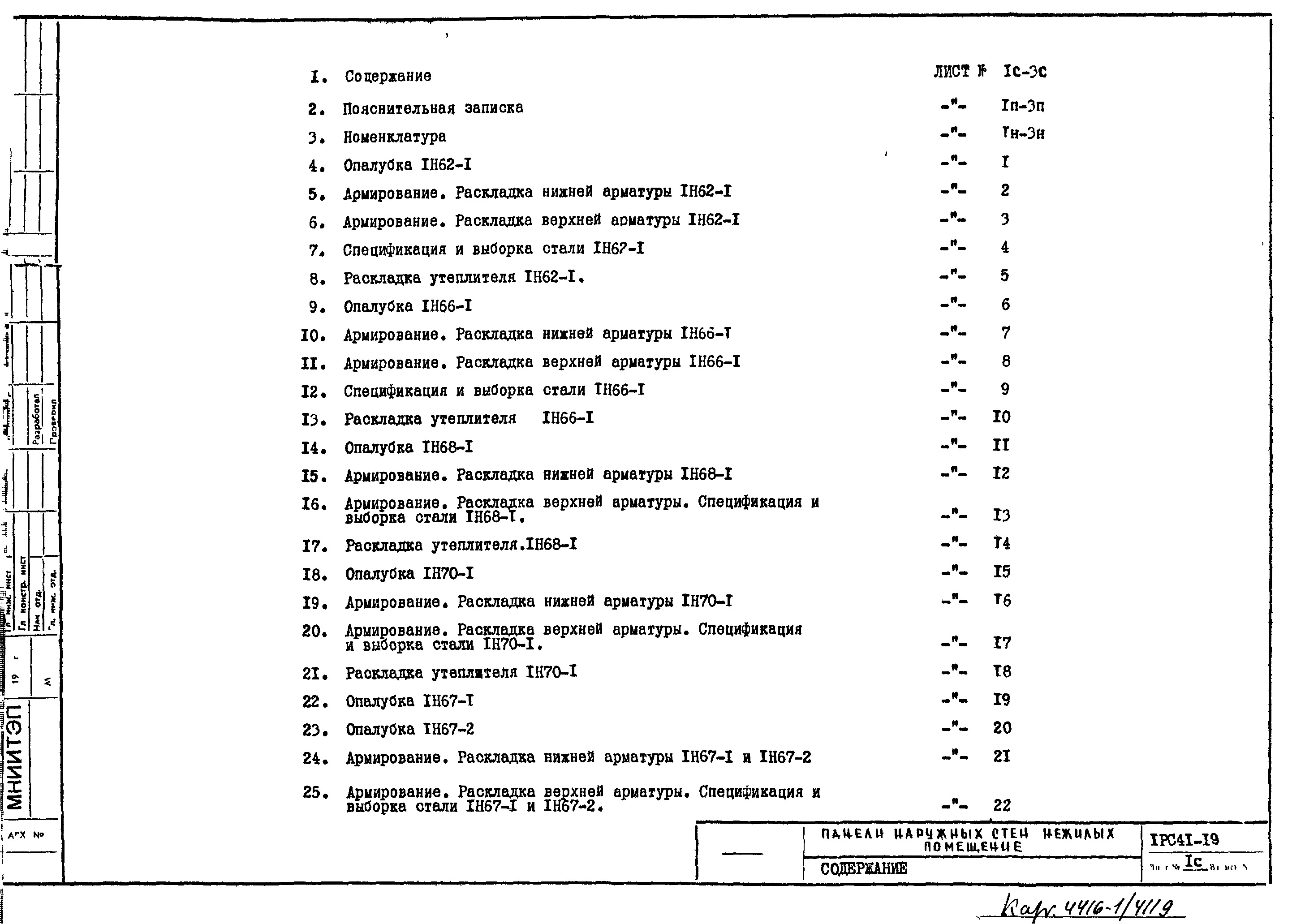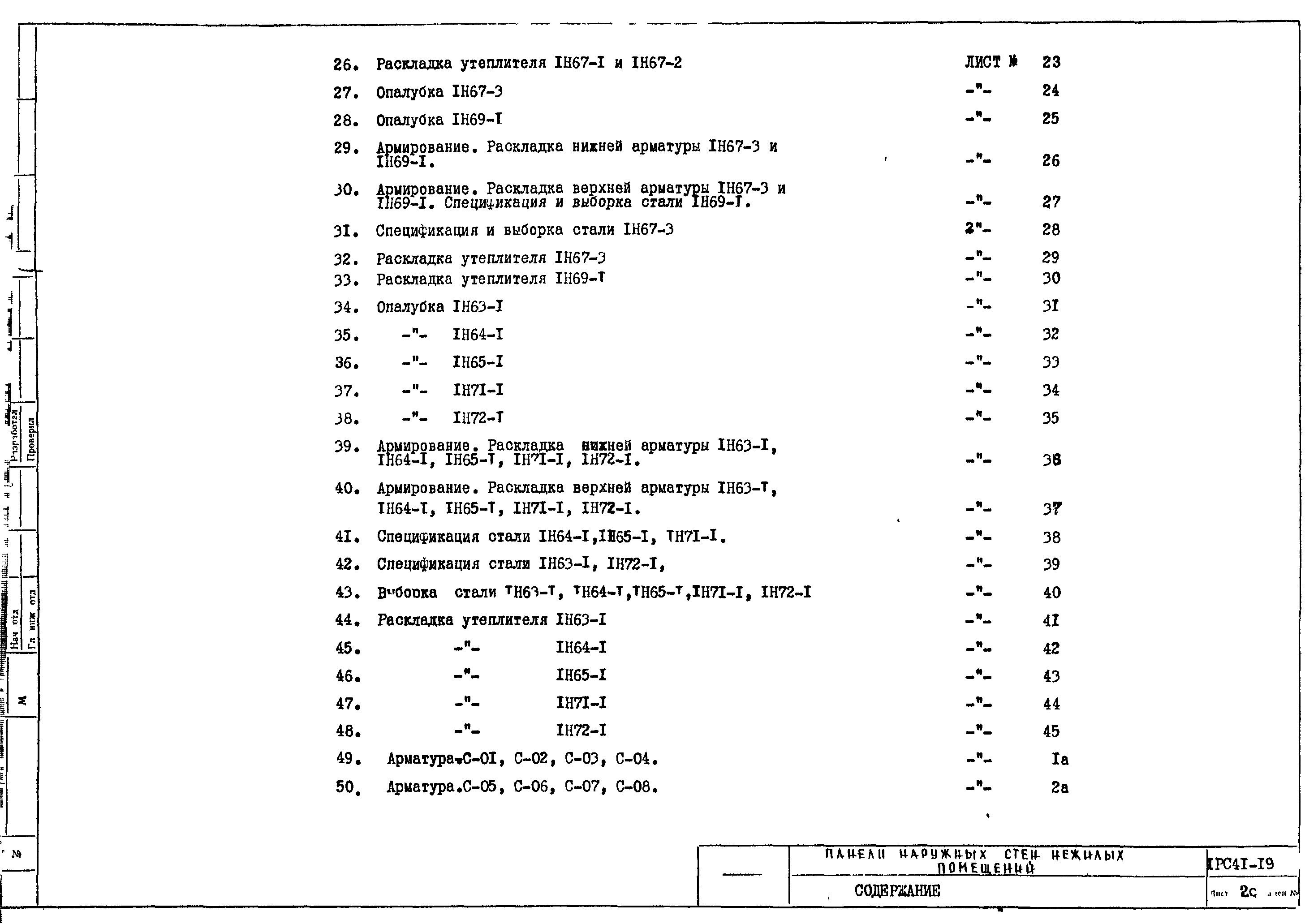 Шифр 1РС 41-19 Панели наружных стен нежилых помещений. Рабочие чертежи. Разработка 1976 года