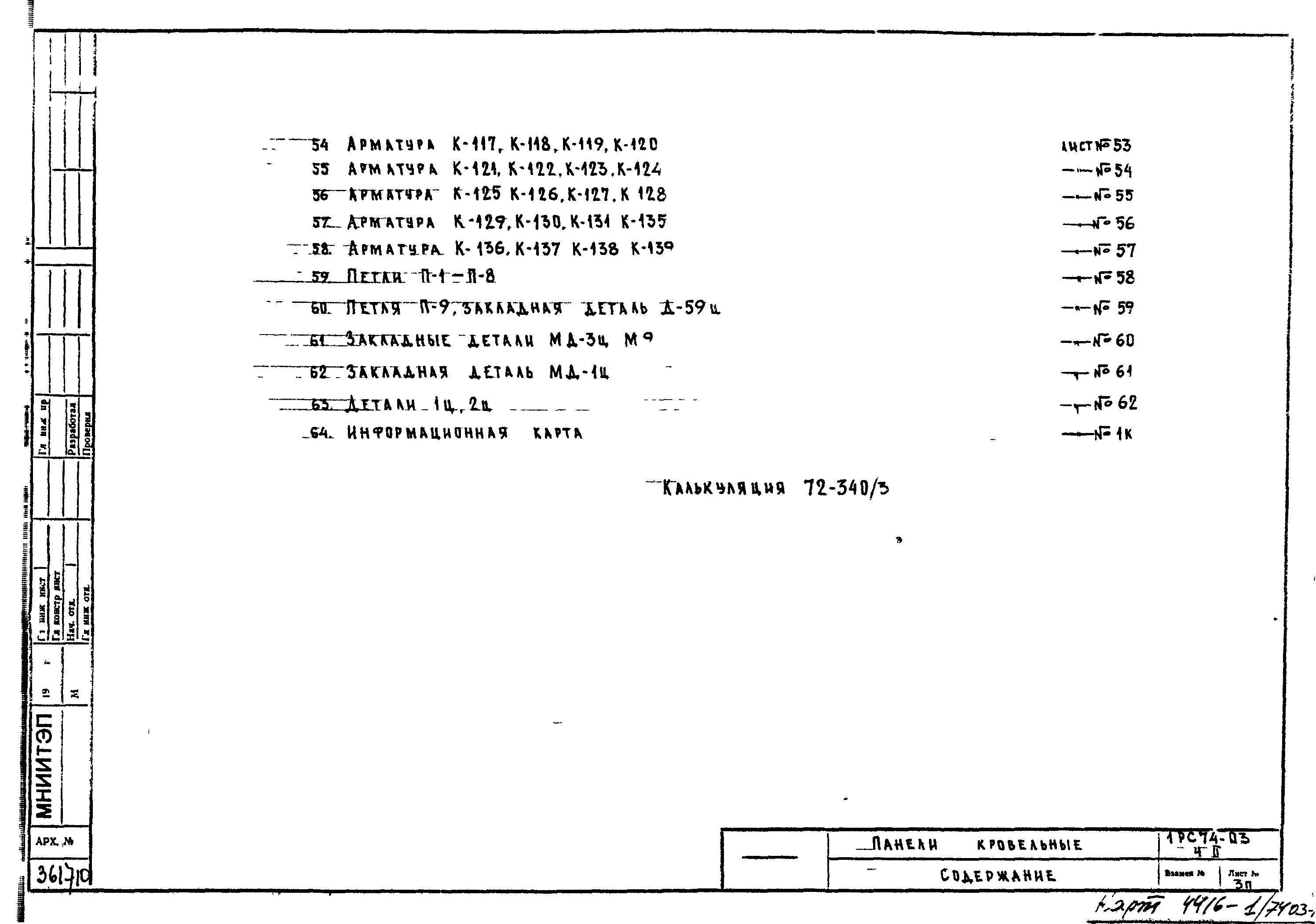 Шифр 1РС 74-03 Панели кровельные многослойные для безрулонной крыши . Рабочие чертежи. Разработка 1974 года