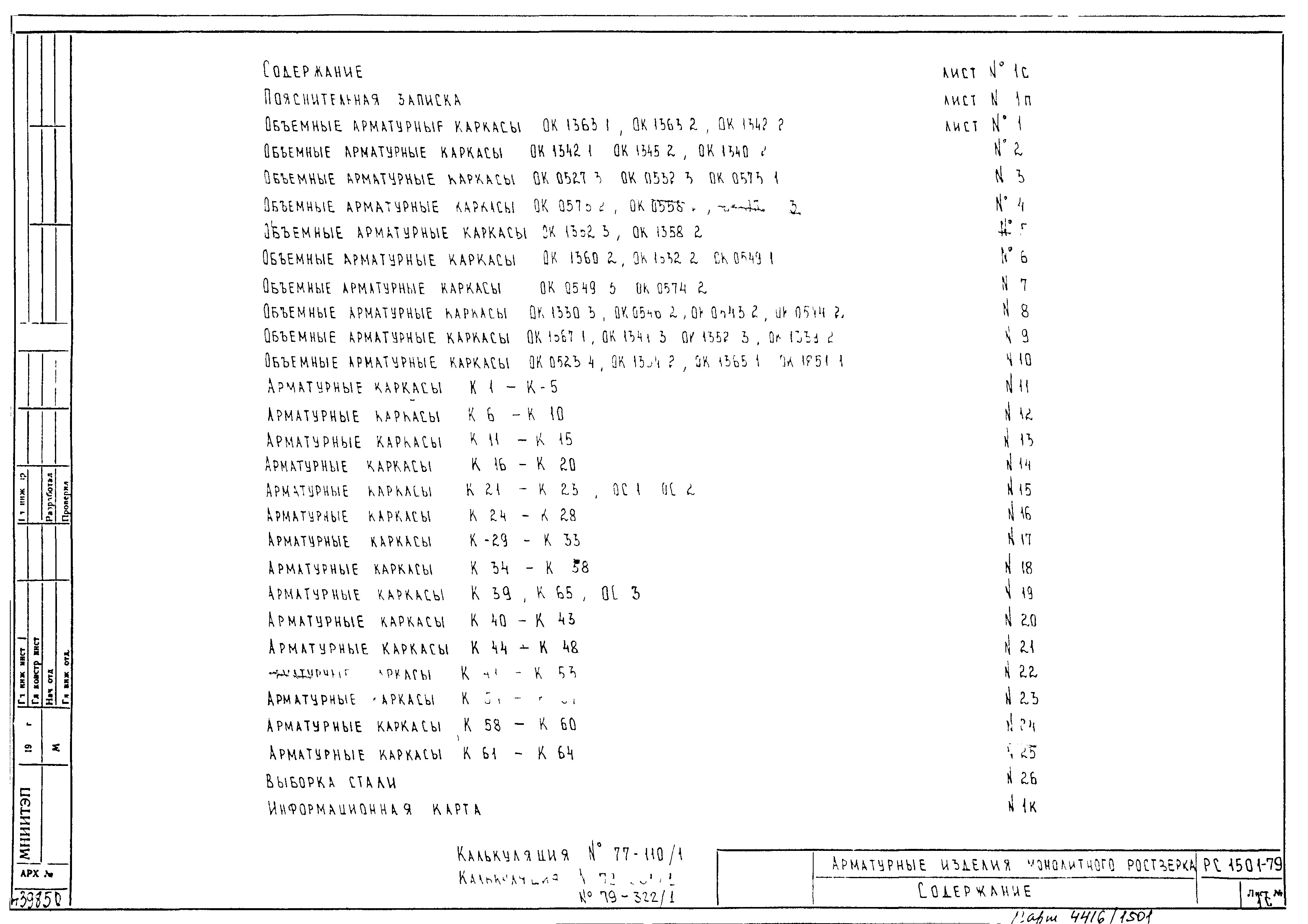 Шифр РС 1501 Арматурные изделия монолитного ростверка. Рабочие чертежи. Разработка 1977 года