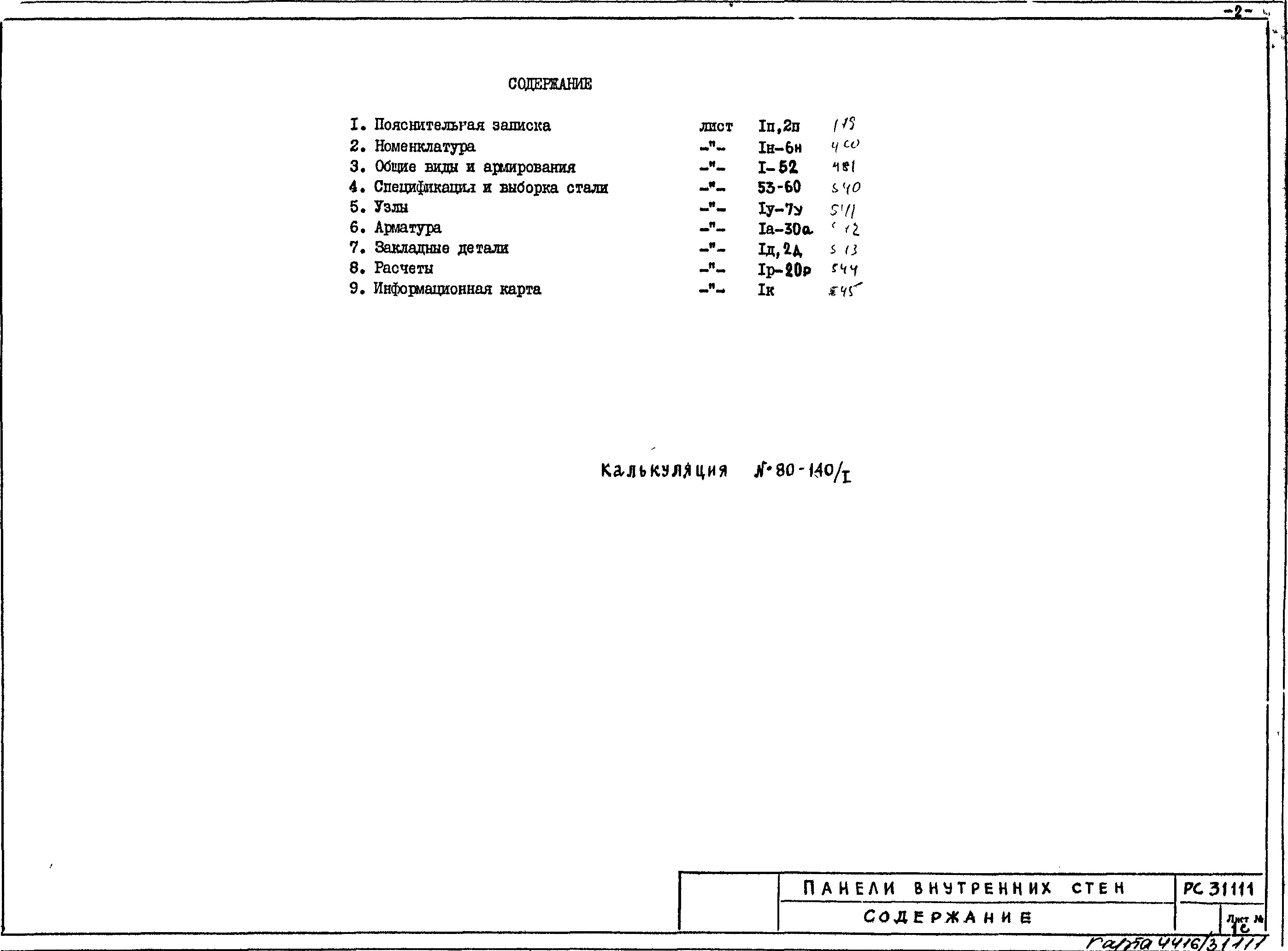 Шифр РС31111 Панели внутренних стен. Рабочие чертежи. Разработка 1981 года