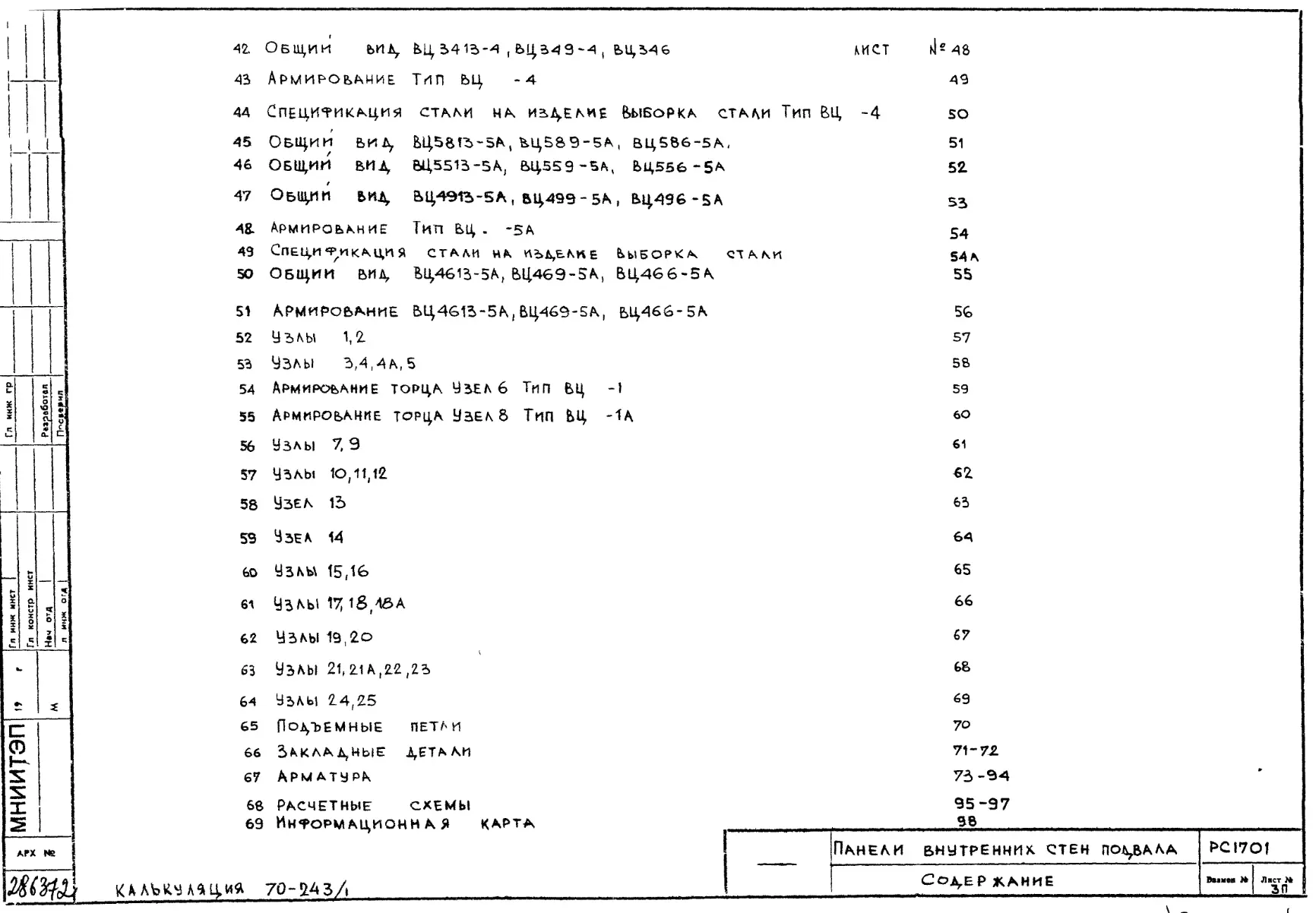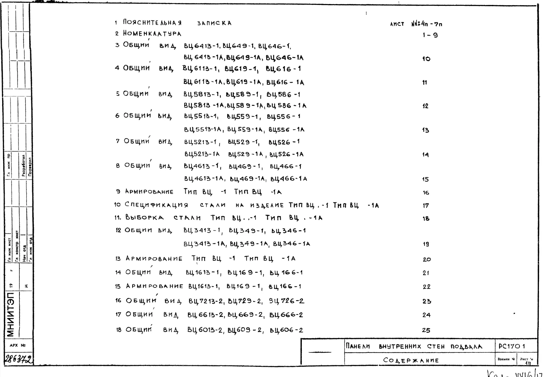 Шифр РС 1701 Панели внутренних стен подвала толщиной 18 см. Рабочие чертежи.