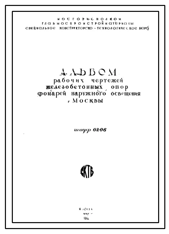 Шифр 02-06 Железобетонные опоры фонарей наружного освещения г.Москвы (СКТБ, 1961 год)
