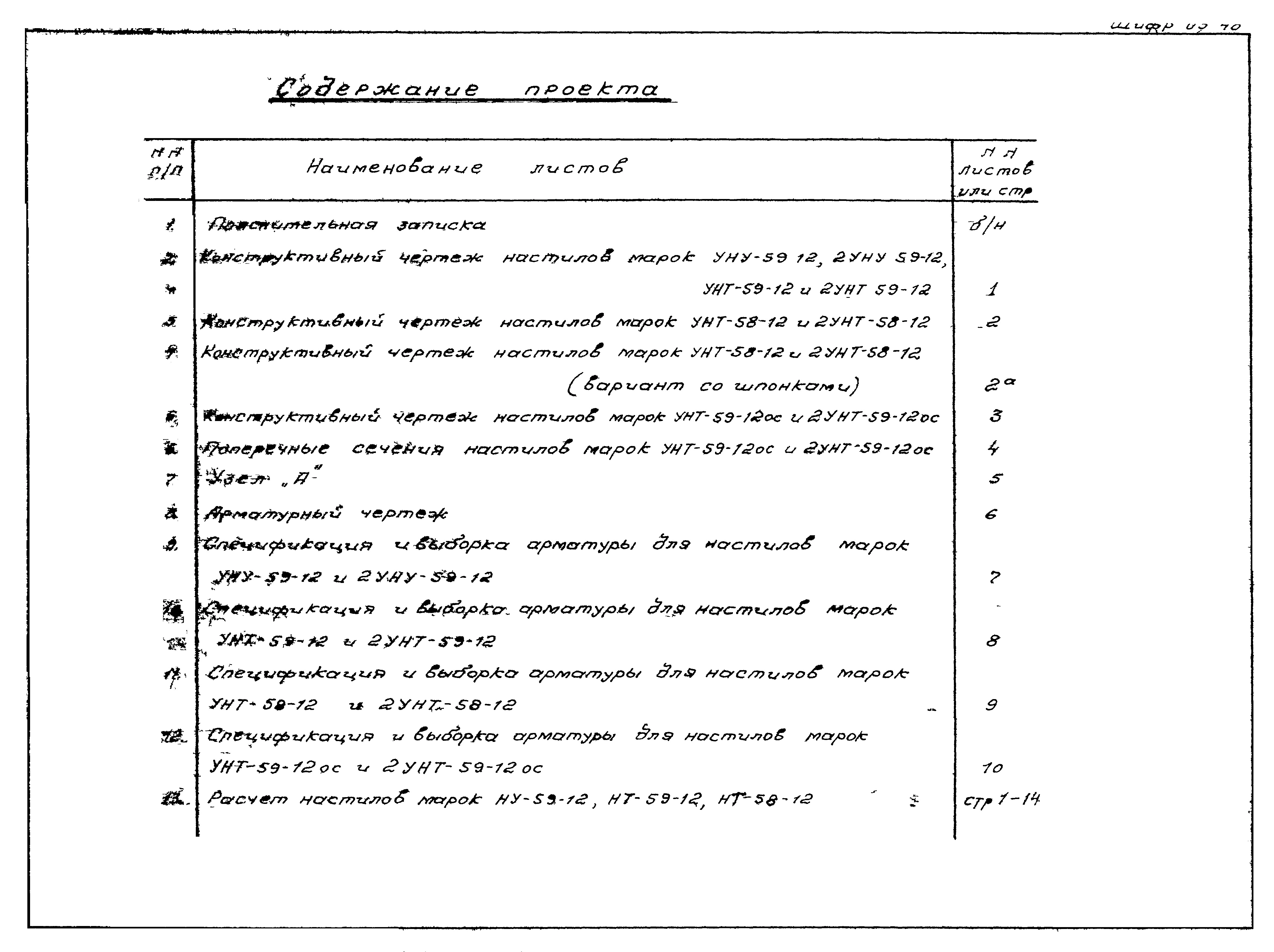 Шифр 03-48 Настилы перекрытий с укороченными предварительно напряженными стержнями. Марки настилов УНУ-59-12, УНТ-59-12, 2УНТ-59-12, УНТ-58-12, 2УНТ-58-12, УНТ-59-12ос. Рабочие чертежи. Разработка 1964 года