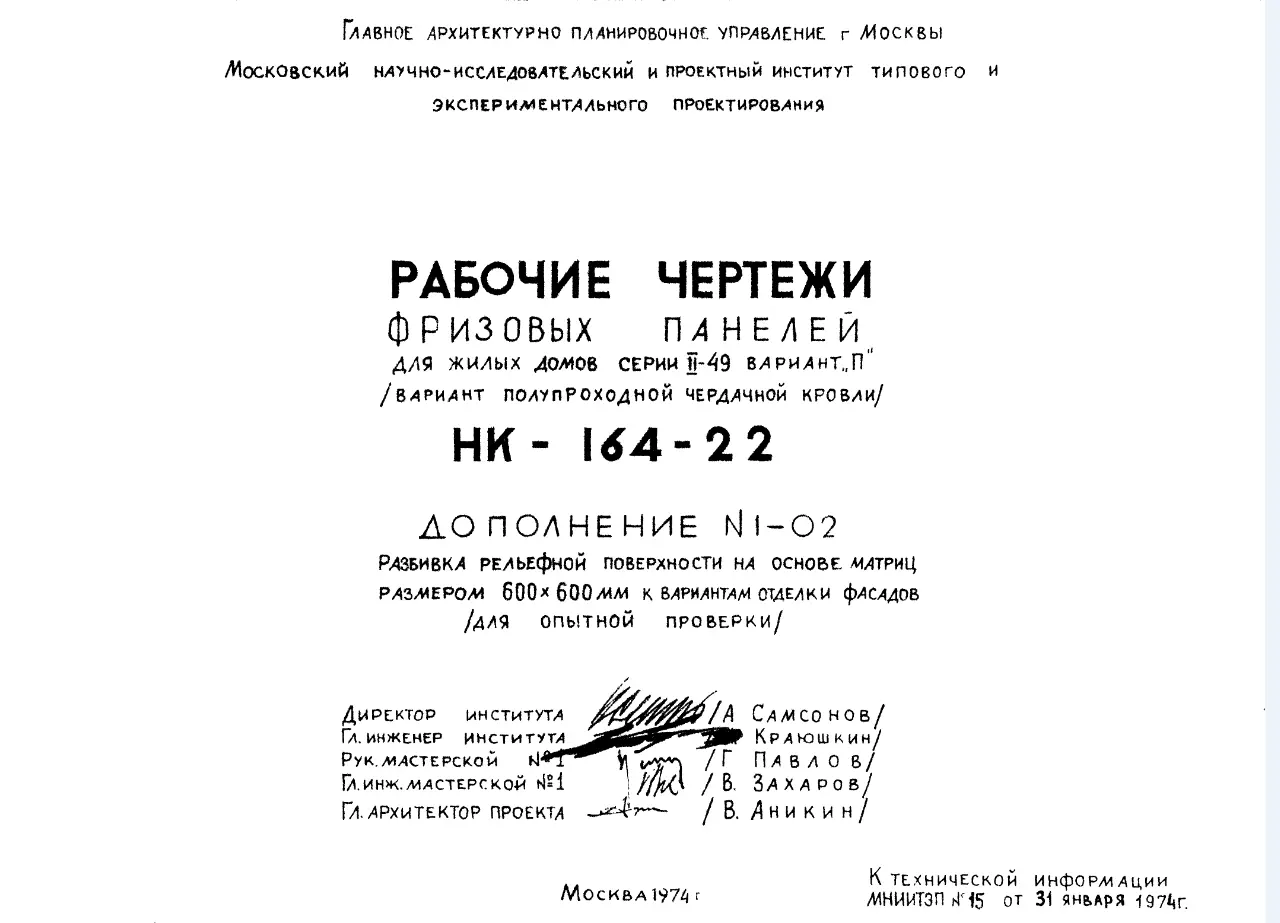 Шифр НК-164-22 Фризовые панели для жилых домов серии II-49 вариант "П" (вариант полупроходной чердачной кровли) (1964 г.)