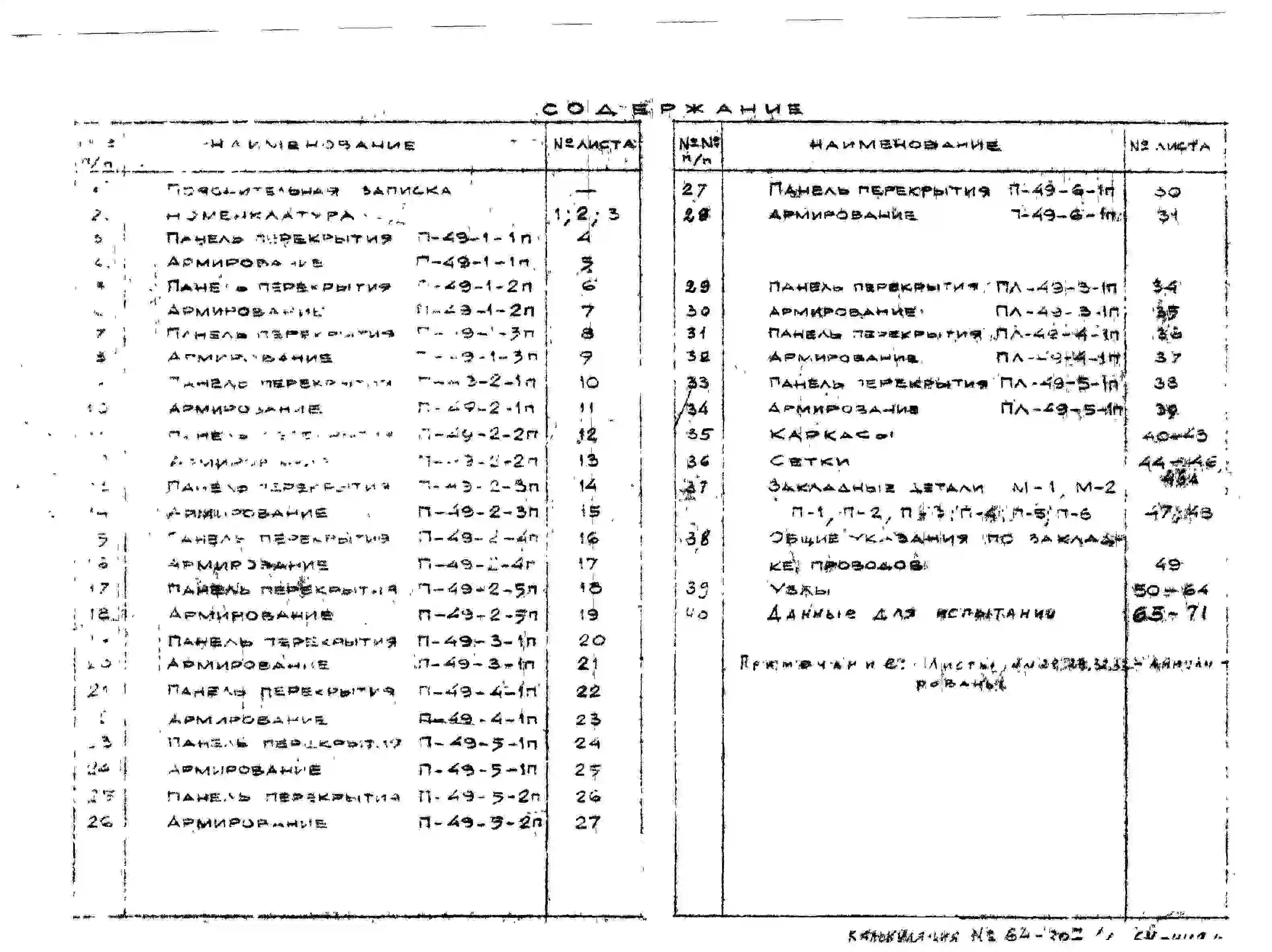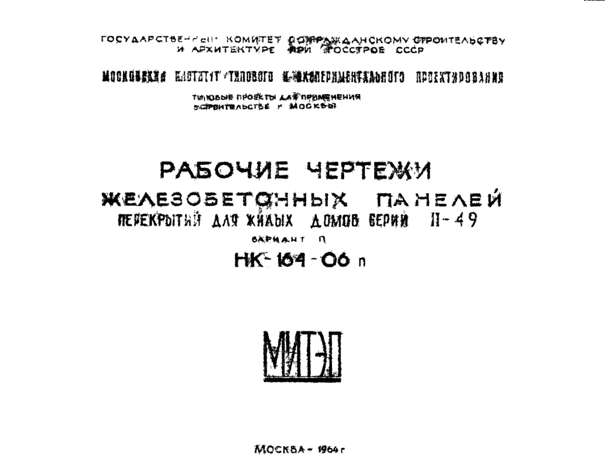 Шифр НК-164-06п Железобетонные панели перекрытий для жилых домов серии II-49 вариант "П" (1964 г.)