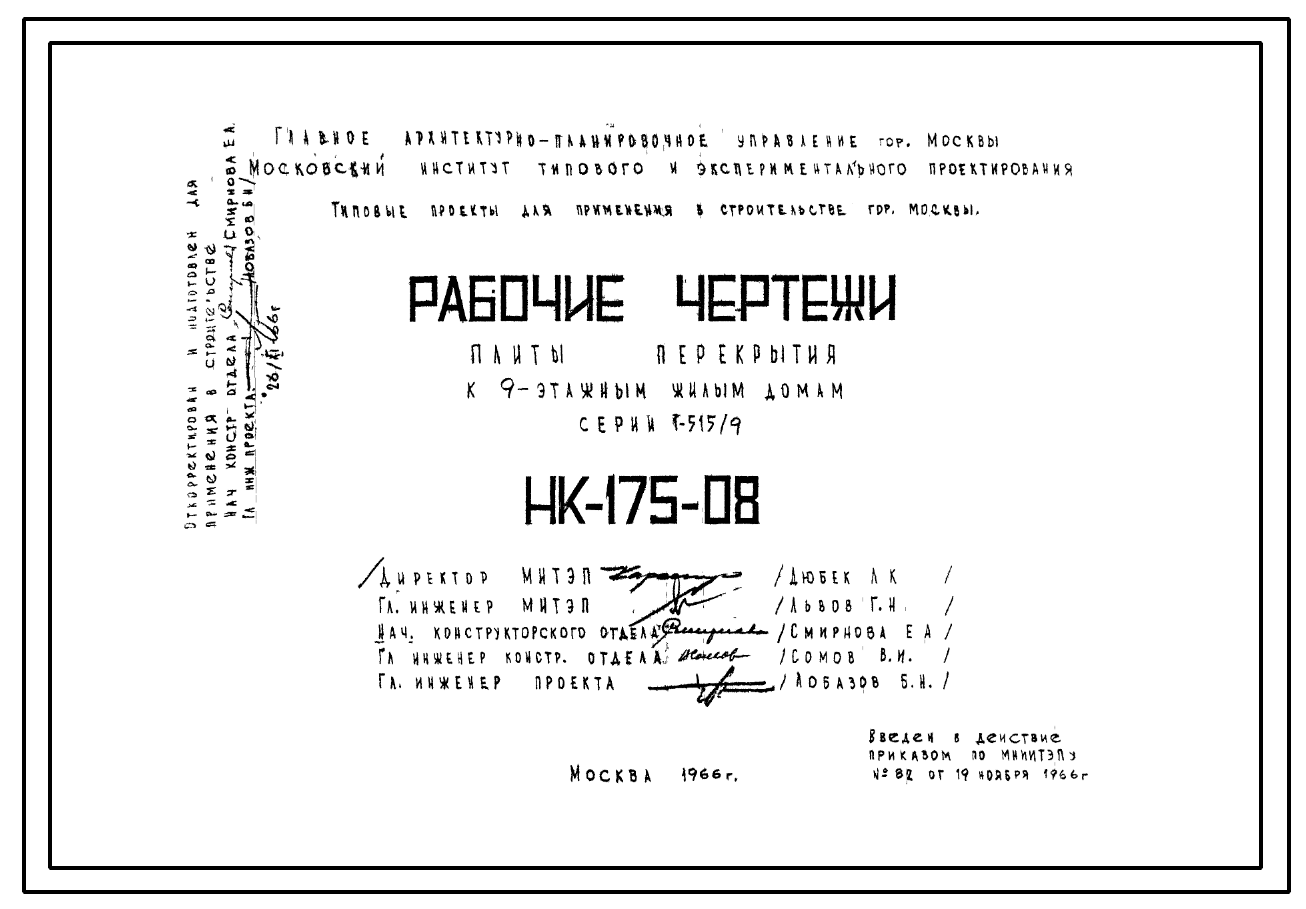 Шифр НК-175-08 Плиты перекрытия к 9 этажным жилым домам серии 1-515/9 (1966 г.)