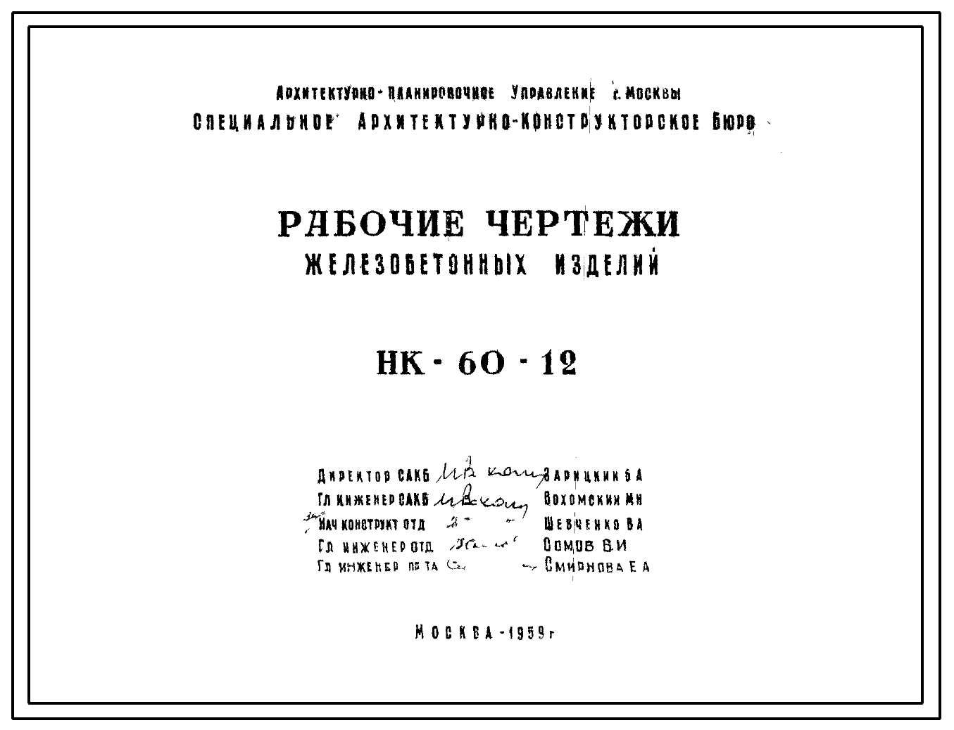 Шифр НК-60-12 Железобетонные изделия (1959 г.)