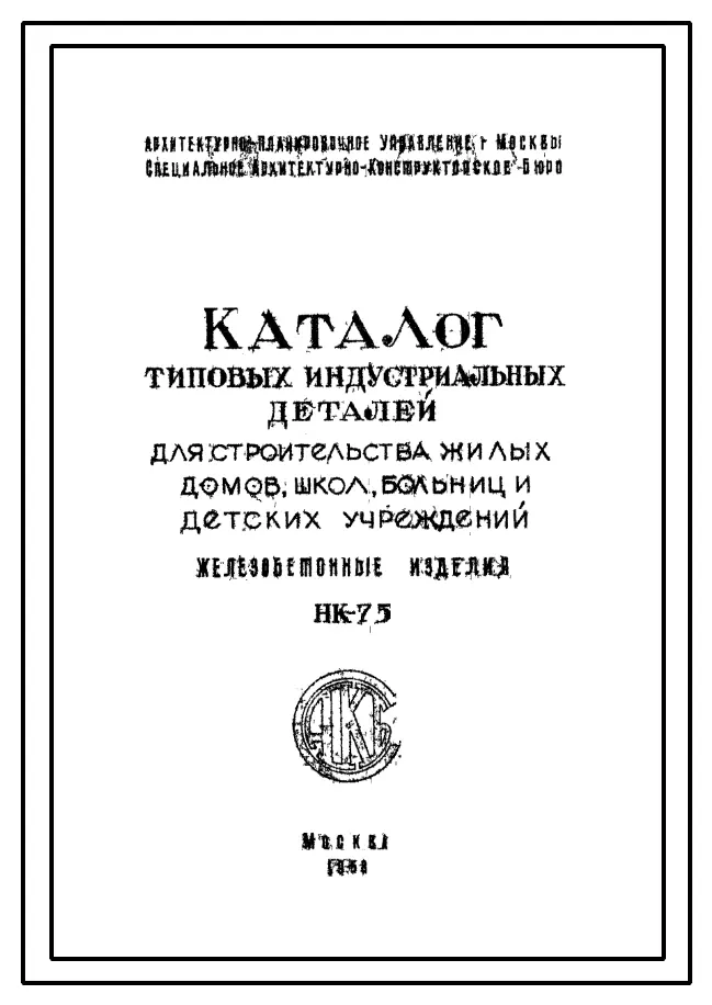 Шифр НК-75 Каталог типовых индустриальных деталей для строительства жилых домов, школ, больниц и детских учреждений. Железобетонные изделия (1953 г.)