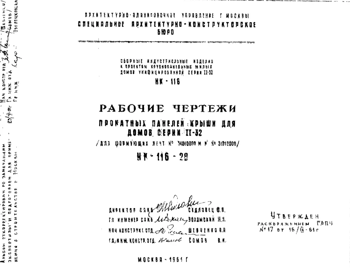 Шифр НК-116-28 Прокатные панели крыши для домов серии II-32 (для формующих лент №34010000 М и № 31010000) (1961 г.)