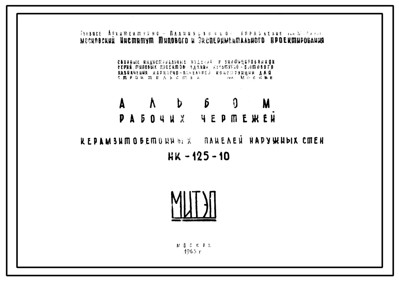 Шифр НК-125-10 Керамзитобетонные панели наружных стен (1963 г.)