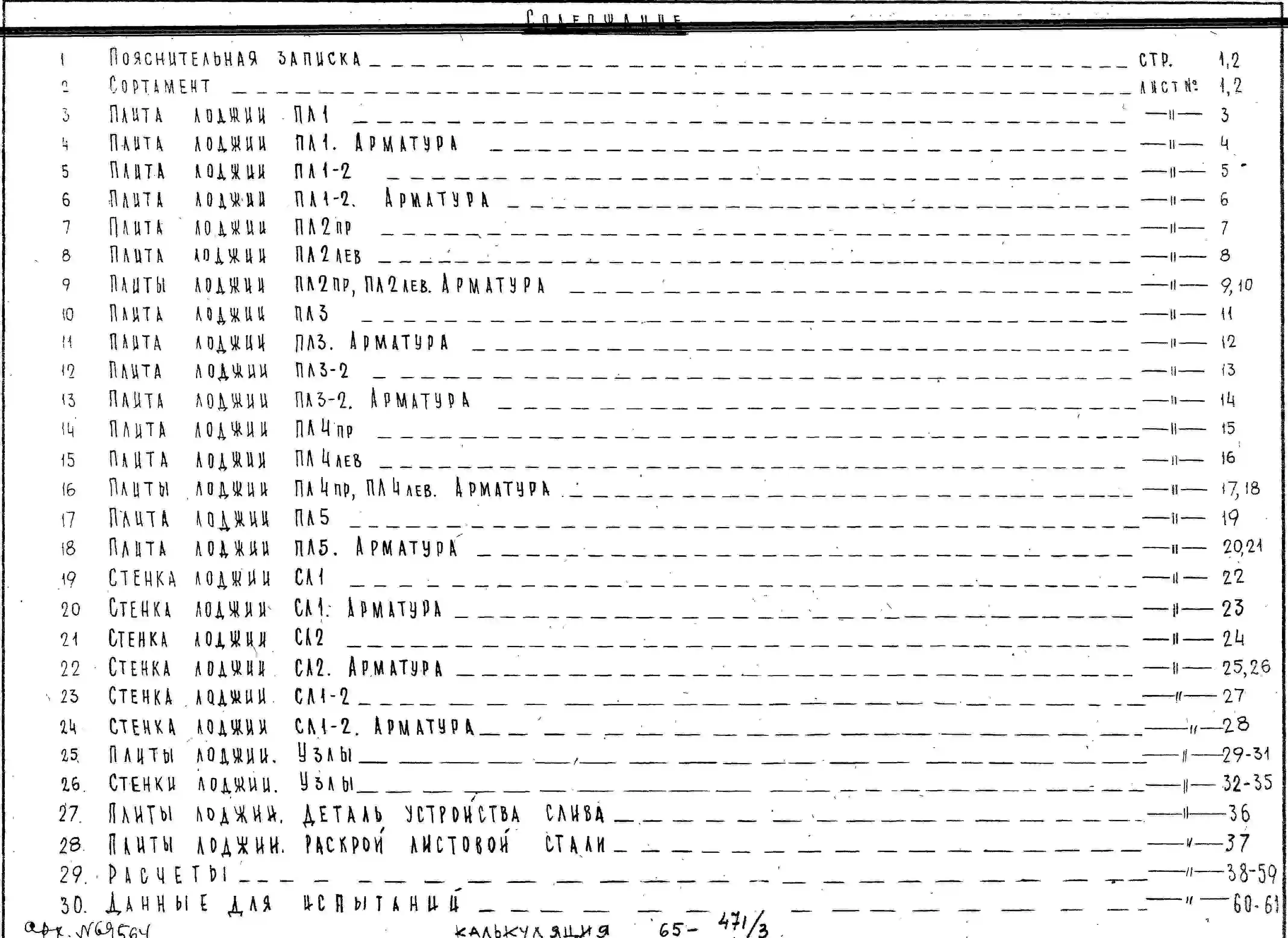 Шифр НК-172-11 Железобетонные плиты и стенки лоджий для 9-ти этажных жилых домов по типу 1605 АМ к проектам И-220-10; И-221-09; И-221-04 (1965 г.)