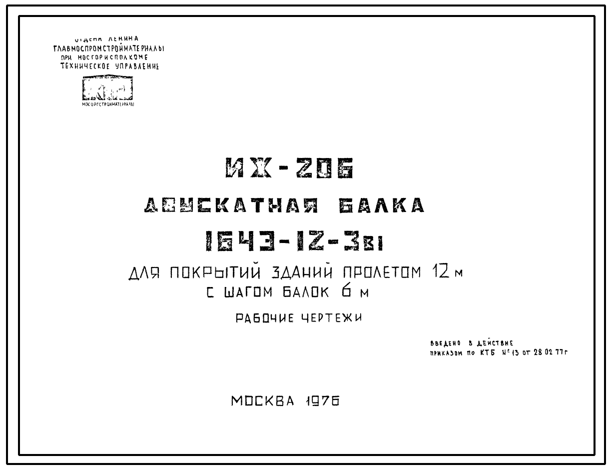 Шифр ИЖ 206 Двускатная балка 1643-12-3в1 для покрытий зданий пролетом 12 м с шагом балок 6 м (1976 г.)