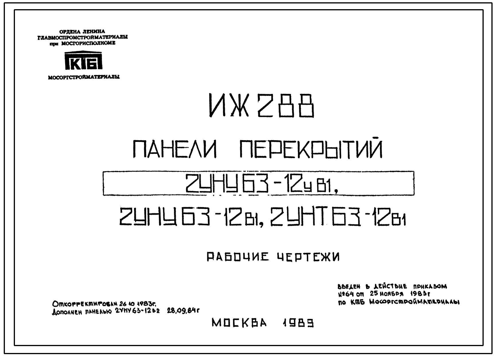 Шифр ИЖ 288 Панели перекрытий 2УНУ63-12в1, 2УНТ63-12в1 (1983 г.)