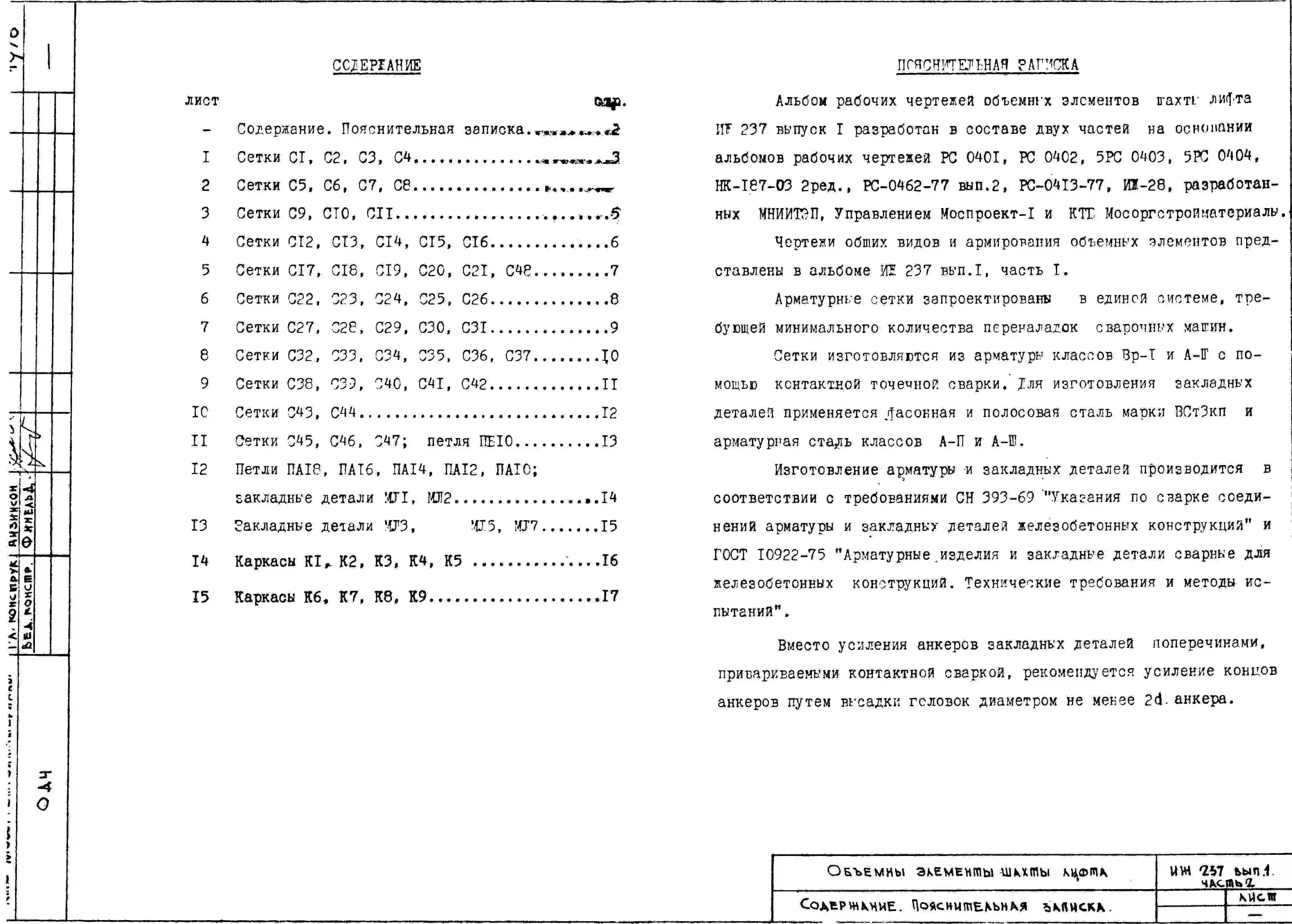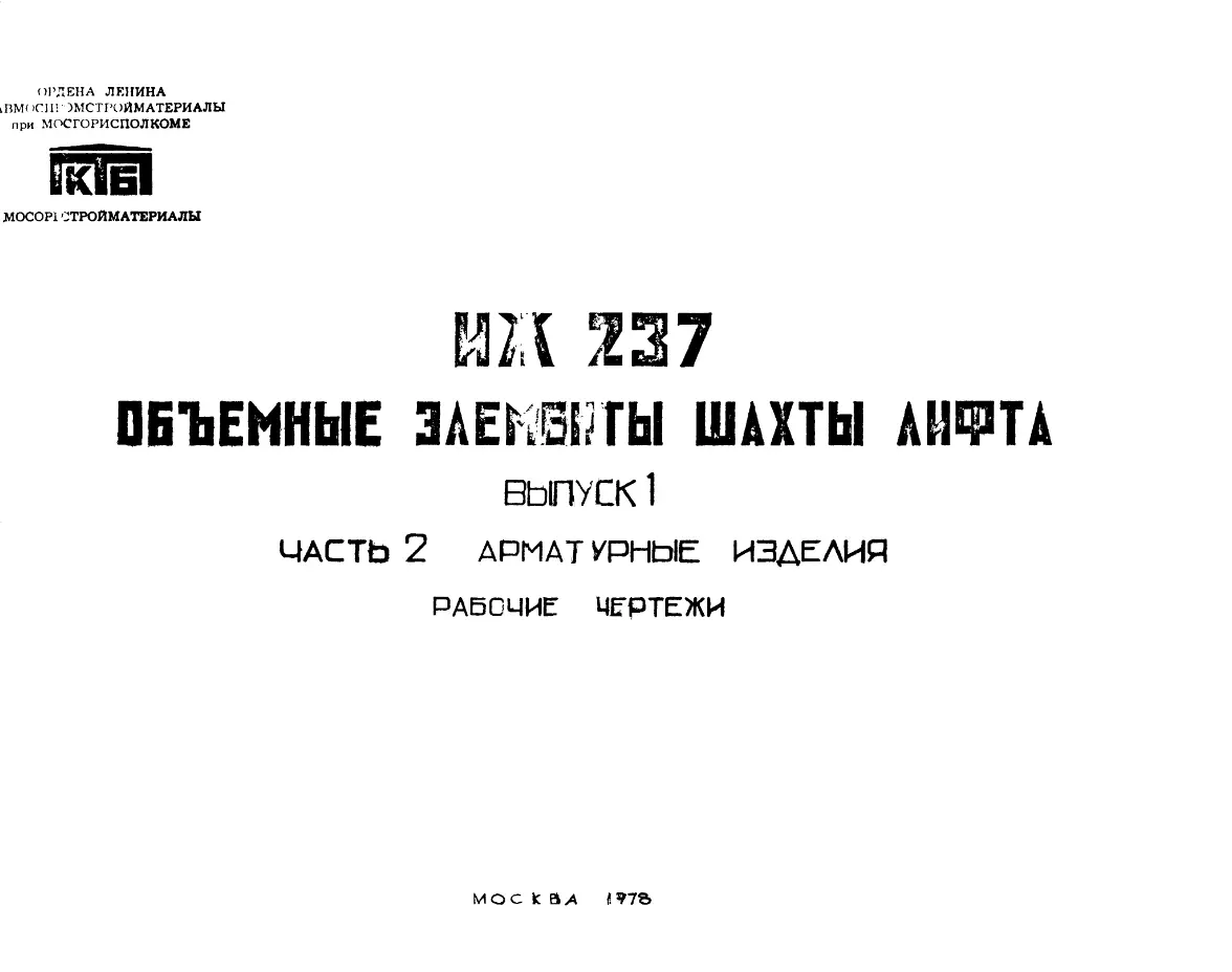 Шифр ИЖ 237 Объемные элементы шахты лифта.Выпуск 1 Часть 2. Арматурные изделия. (1978 г.)