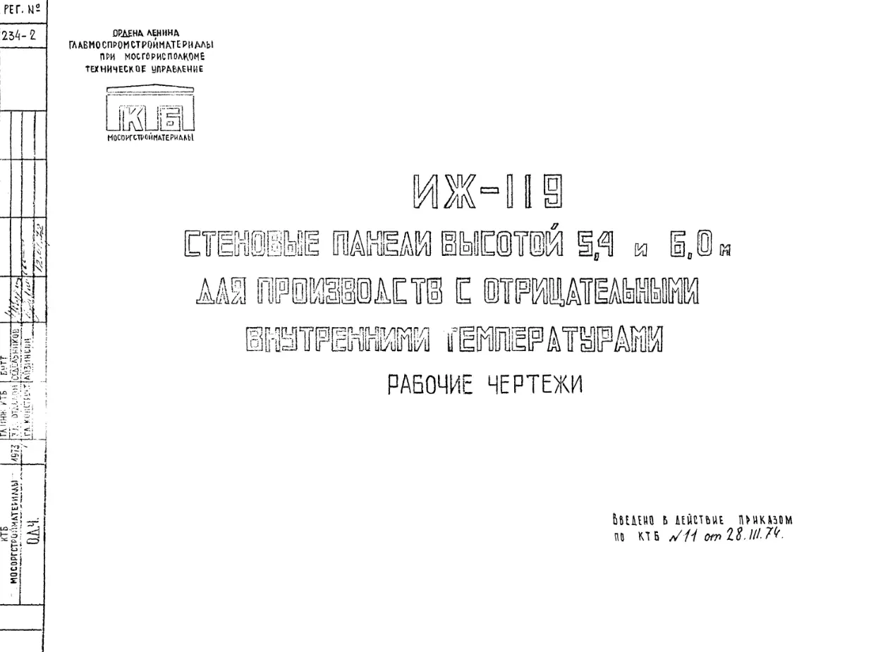 Шифр ИЖ 119 Стеновые панели высотой 5,4 и 6,0 м для производств с отрицательными внутренними температурами (1974 г.)