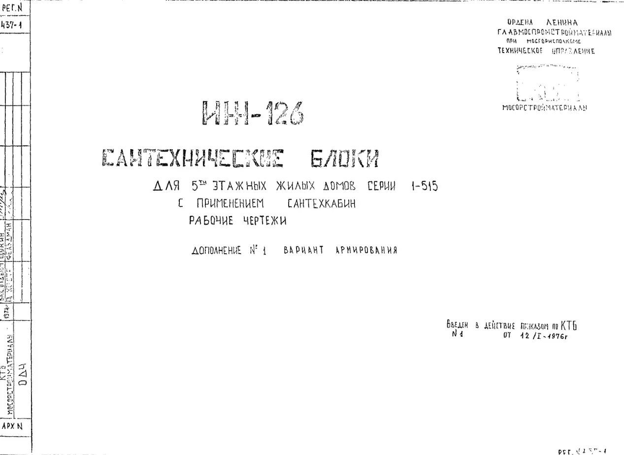 Шифр ИЖ 126 Сантехнические блоки для 5 -этажных жилых домов серии 1-515 с применением сантехкабин