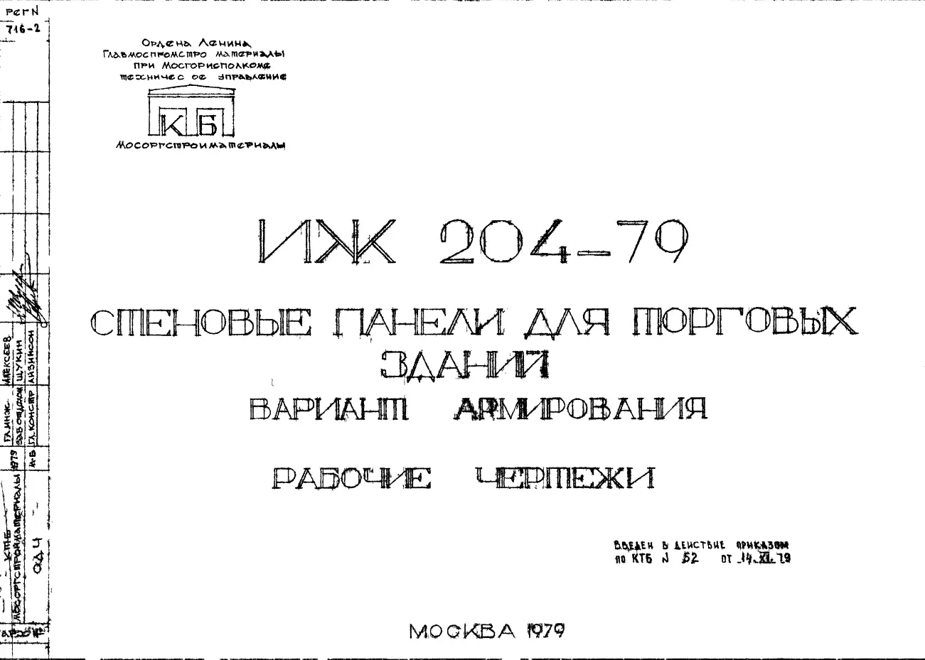 Шифр ИЖ 204-79 Стеновые панели для торговых зданий (вариант армирования) (1979 г.)