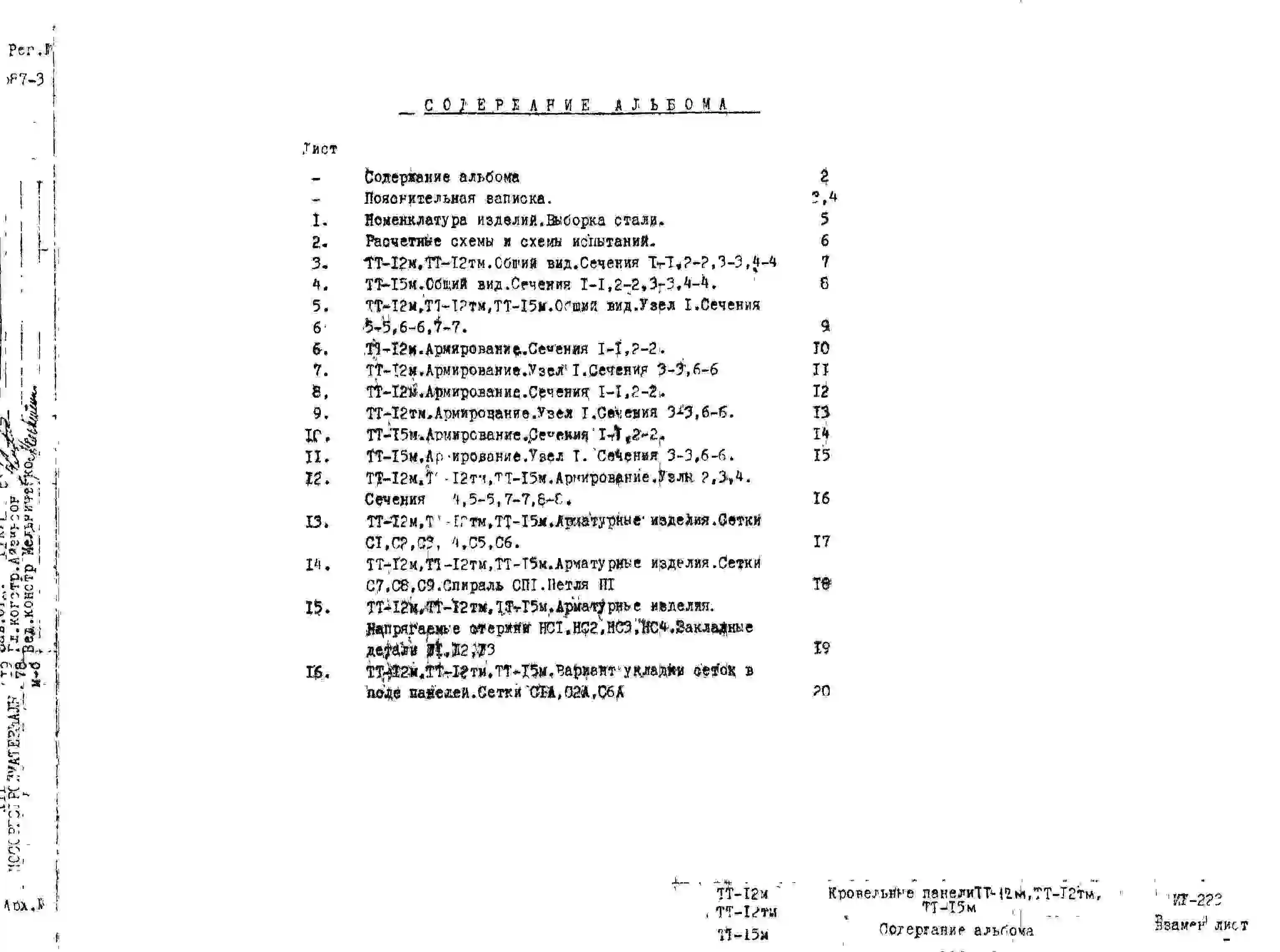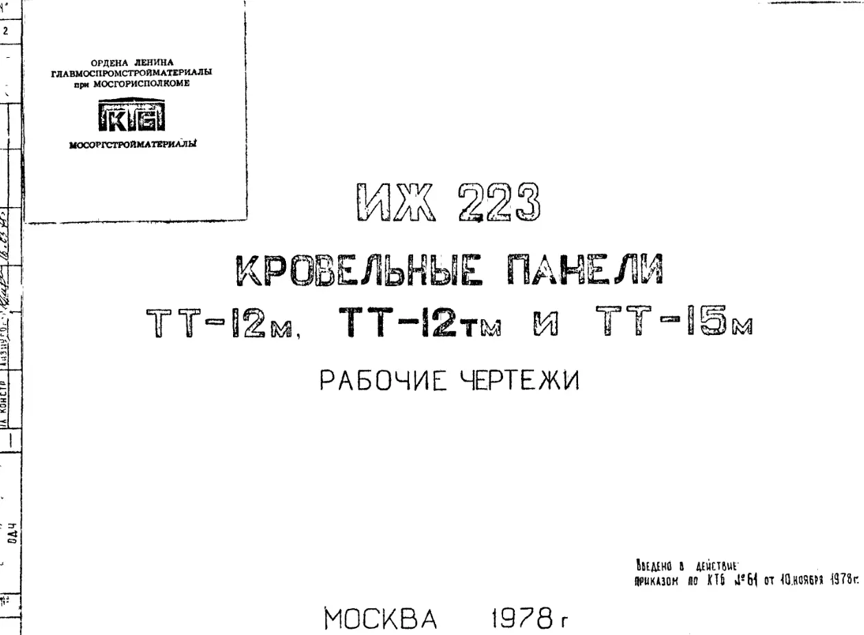 Шифр ИЖ 223 Кровельные панели ТТ-12 м, ТТ-12 тм и ТТ-15 м (1978 г.)