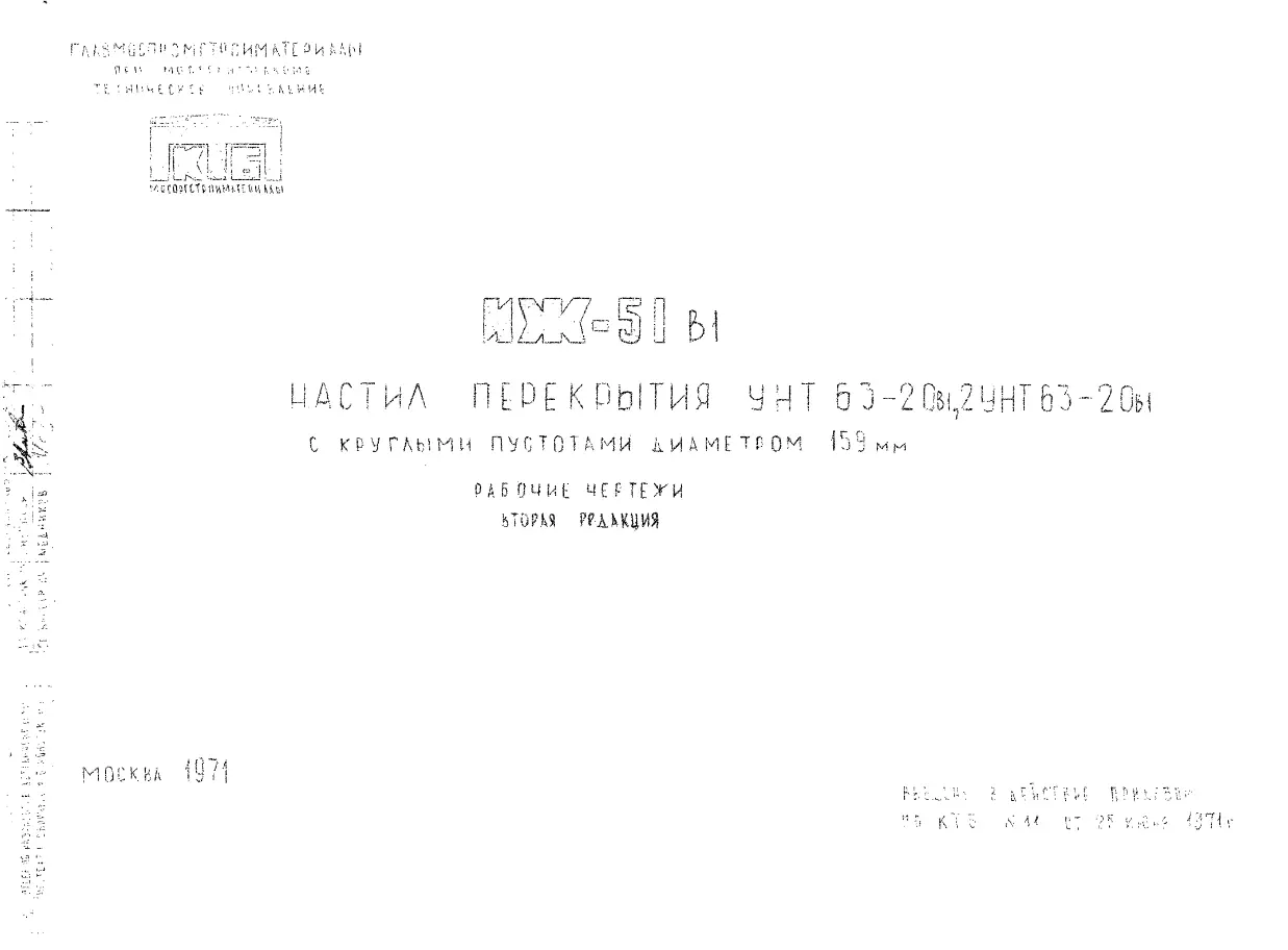 Шифр ИЖ 51 в1 Настил перекрытия УНТ 63-20в1, 2УНТ63-20в1 с круглыми пустотами диаметром 159 мм (1971 г.)