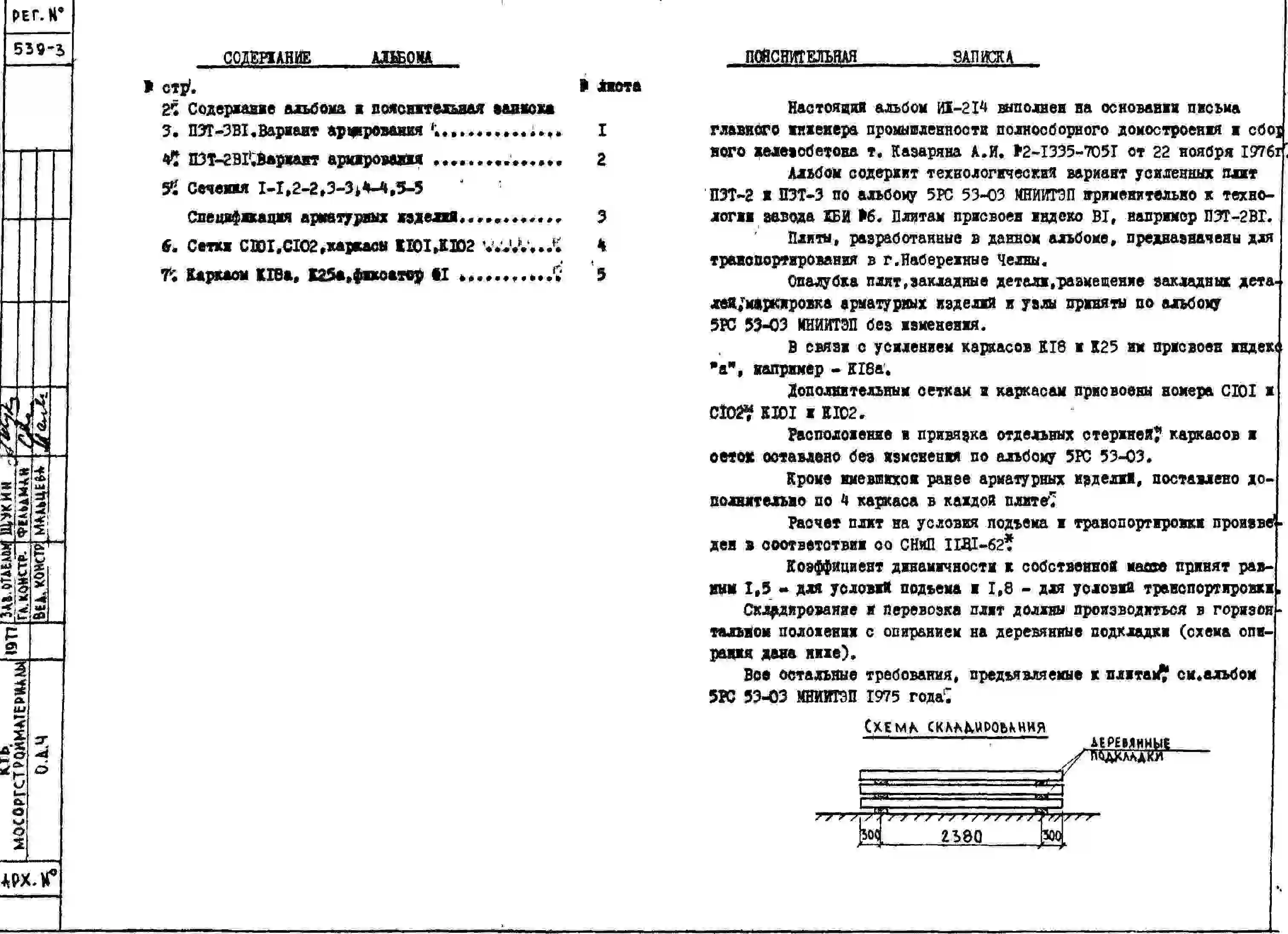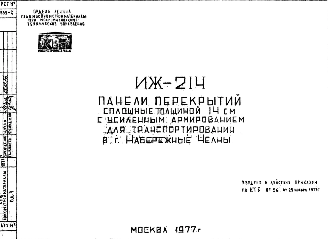 Шифр ИЖ 214 Панели перекрытий сплошные толщиной 14 см с усиленным армированием для транспортирования в г.Набережные Челны (1977 г.)