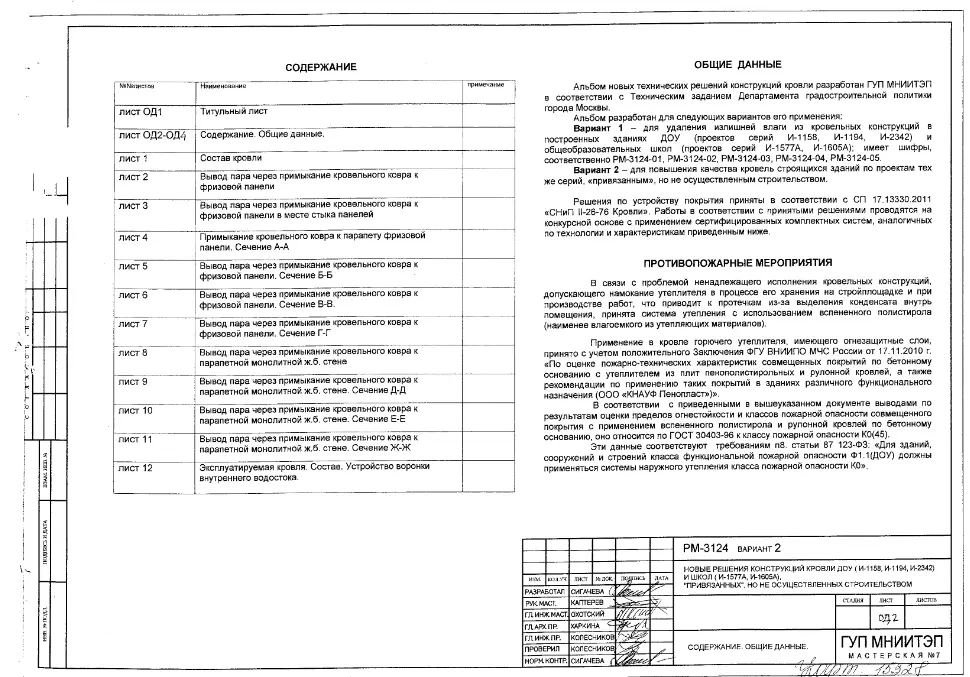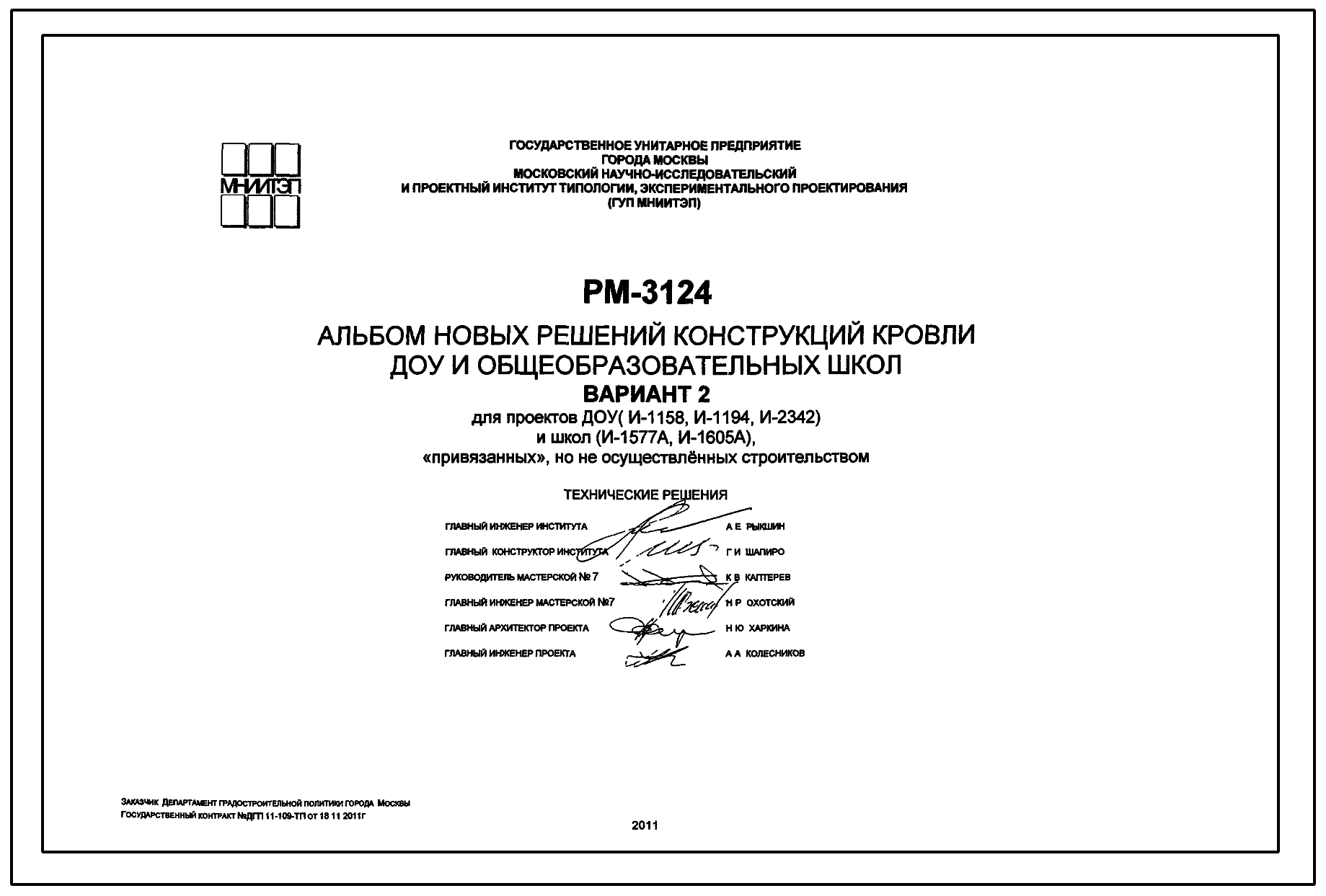 Шифр РМ-3124 Альбом новых решений конструкций кровли ДОУ и общеобразовательных школ для проектов ДОУ (И-1158, И-1194, И-2342) и школ (И-1577А, И-1605А), "привязанных", но не осуществленных строительством (2011 г.)
