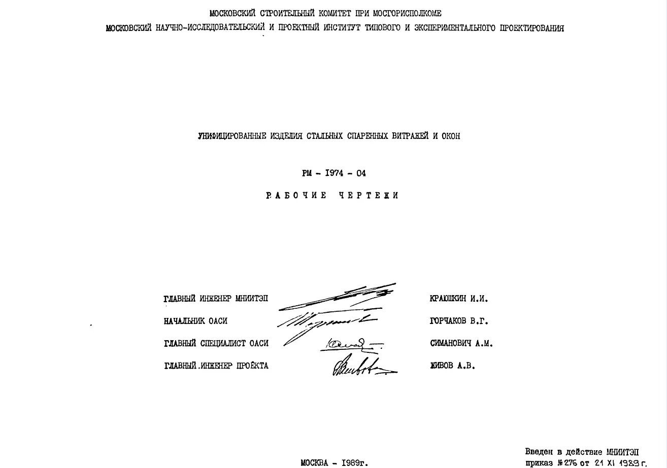 Шифр РМ-1974-04 Унифицированные изделия стальных спаренных витражей и окон (1989 г.)