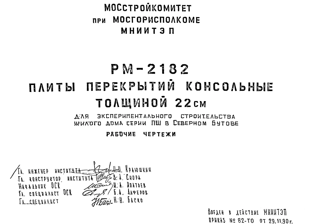 Шифр РМ-2182 Плиты перекрытий консольные толщиной 22 см. Для экспериментального строительства жилого дома серии ПШ в Северном Бутове (1990 г.)