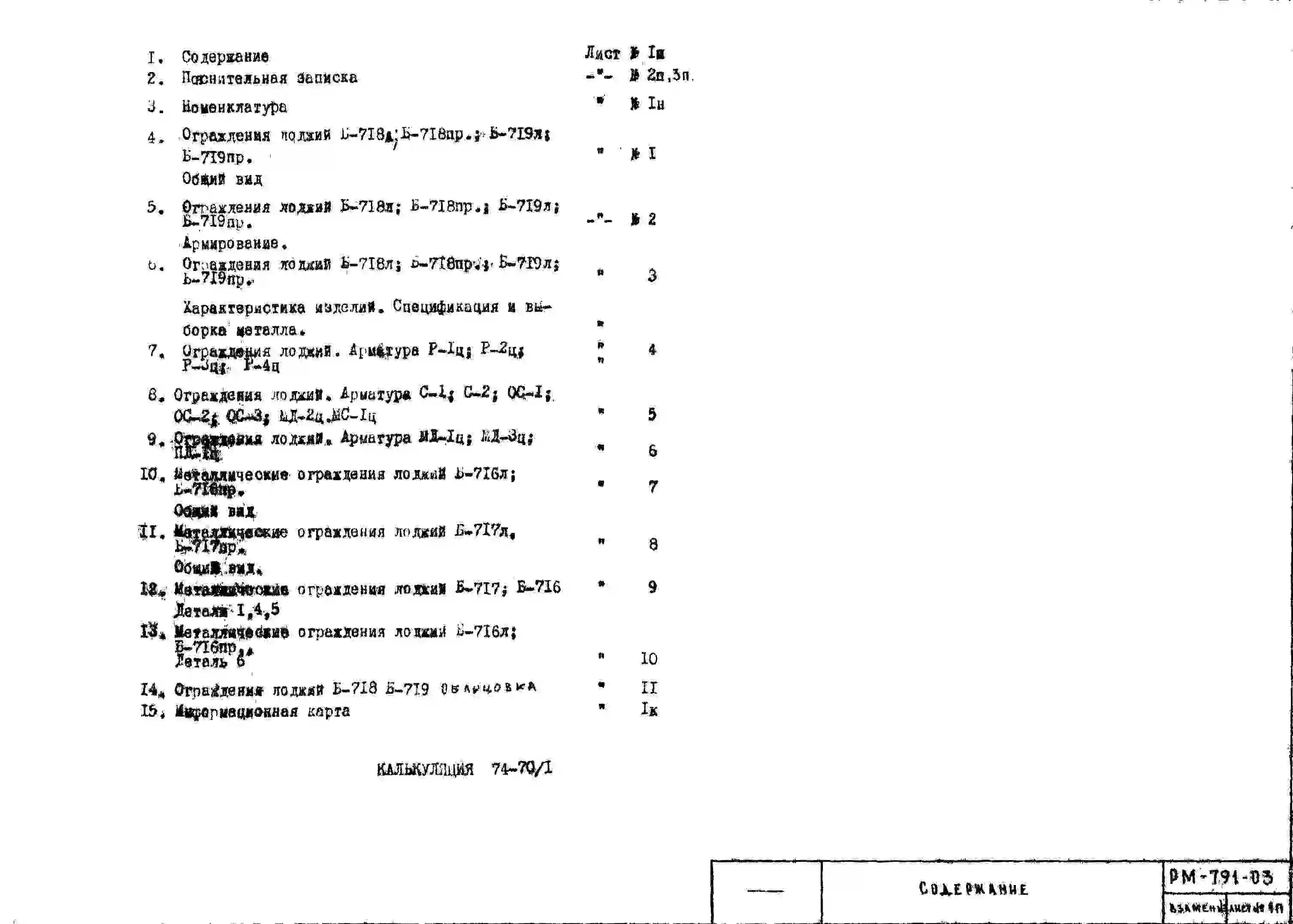 Шифр РМ-791-03 Лоджии и балконы. Ограждения улучшенного типа с экранами из железобетона к жилым домам серии II-49 вариант "Д" (1974 г.)