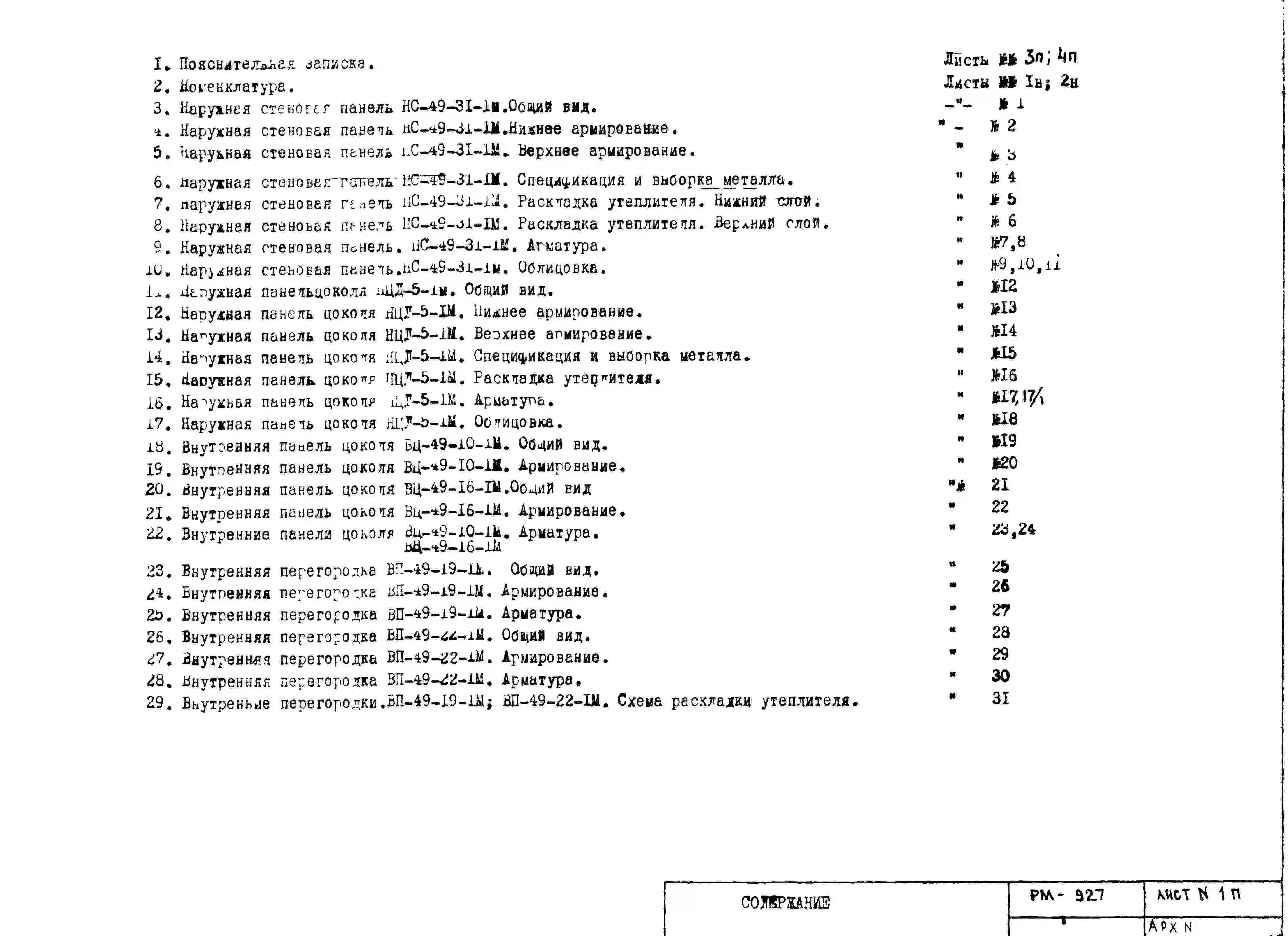 Шифр РМ-927 Железобетонные изделия мусоросборной камеры к жилым домам серии II-49 вариант "Д" (в соответствии с требованиями ВСН-8-72) (1974 г.)