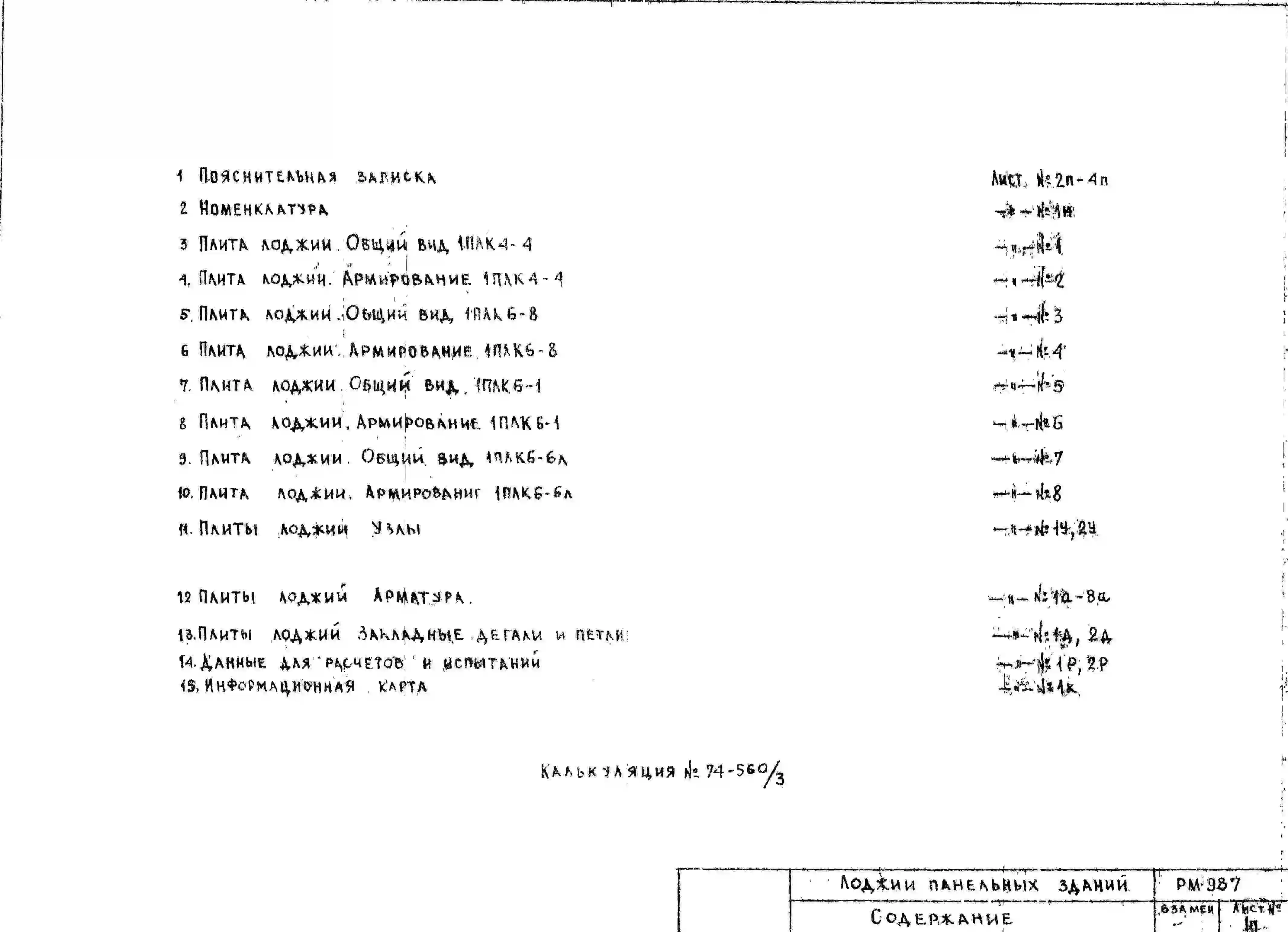 Шифр РМ-987 Лоджии панельных зданий (1975 г.)