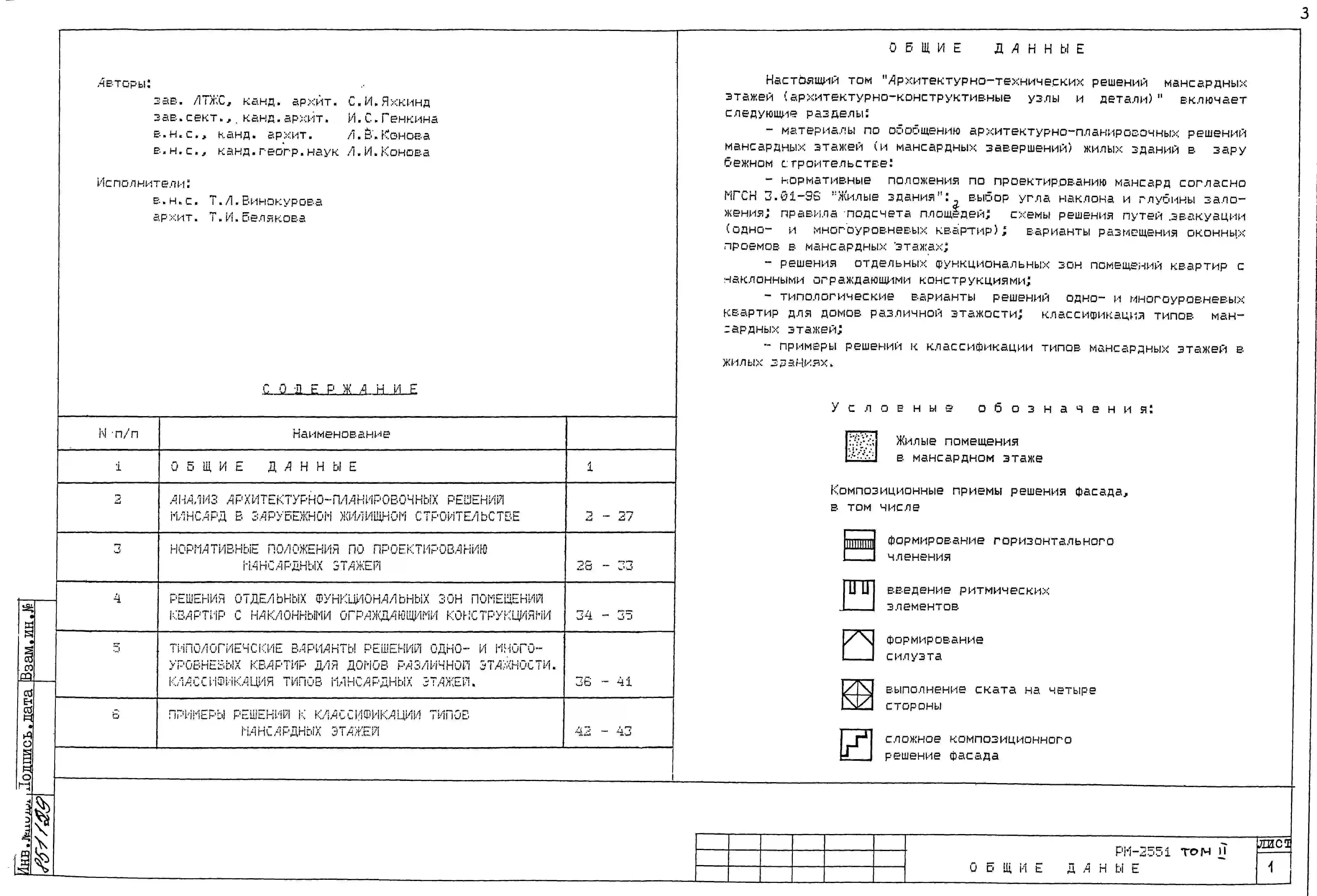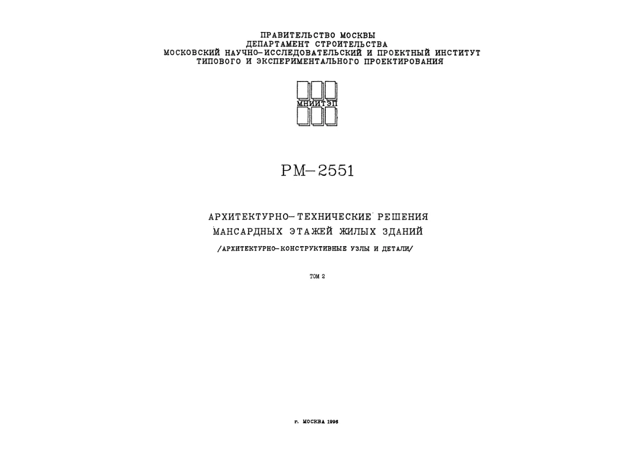 Шифр РМ-2551 Архитектурно-технические решения мансардных этажей жилых зданий (архитектурно-конструктивные узлы и детали) (1996 г.)