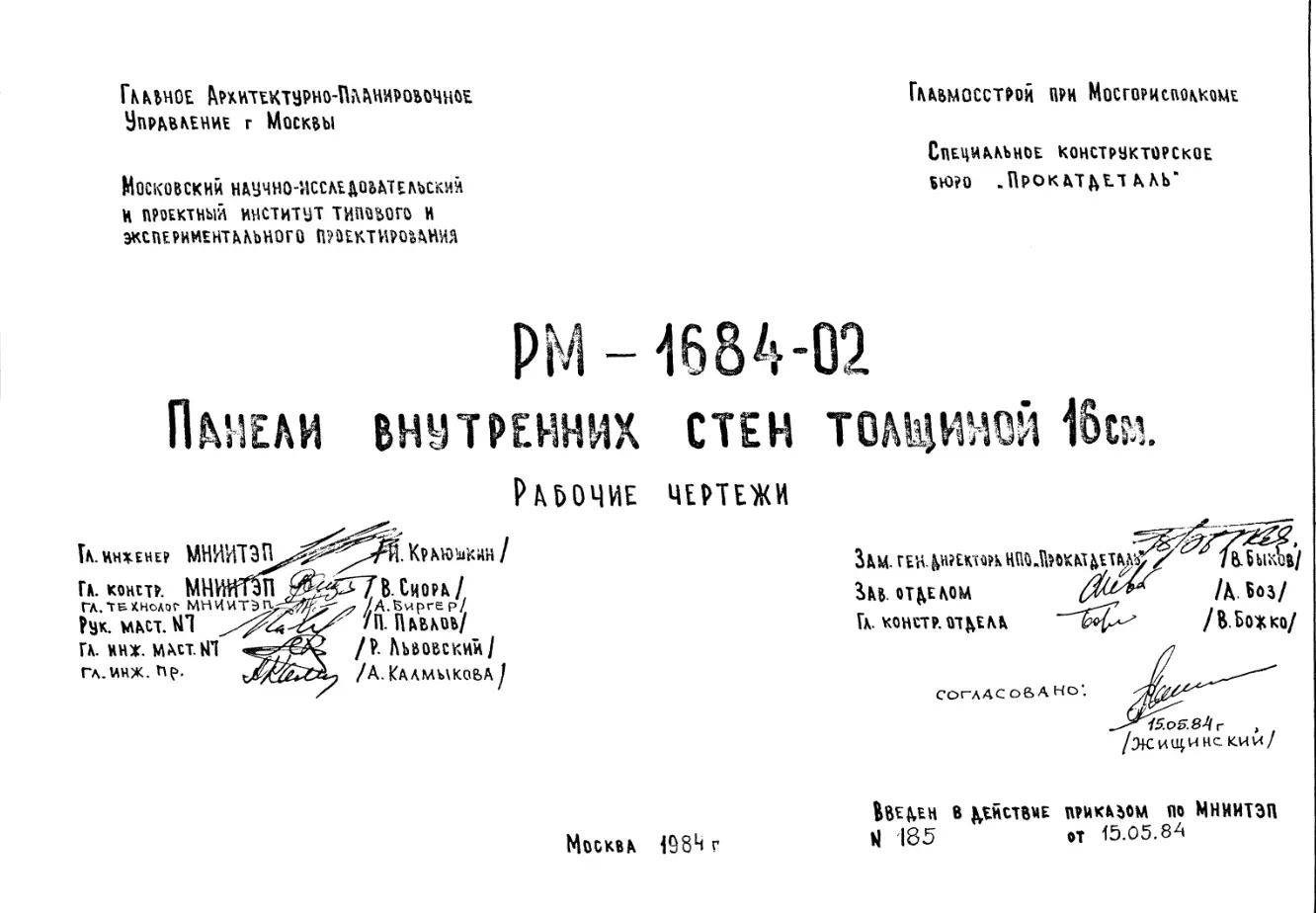 Шифр РМ-1684-02 Панели внутренних стен толщиной 16 см. (1984 г.)