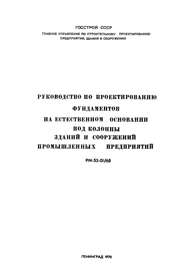 Шифр РМ-53-01/69 Руководство по проектированию фундаментов на естественном основании под колонны зданий и сооружений промышленных предприятий (1970 г.)