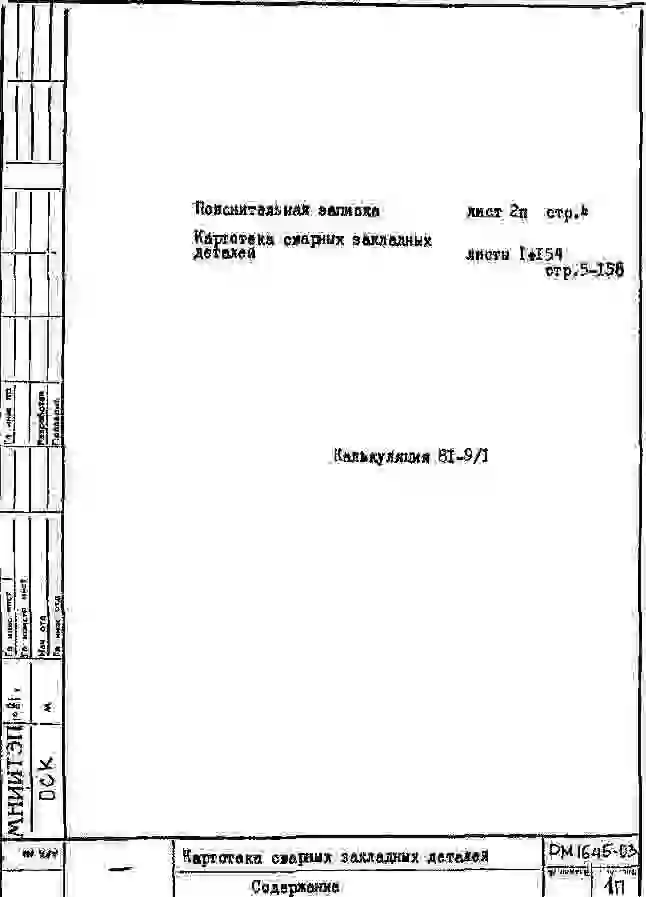 Шифр РМ 1645-03 Расширение области применения и объема внедрения штампованных закладных деталей в изделиях Московского каталога, применяемых для жилых домов панельной конструкции