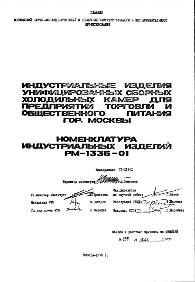 Шифр РМ-1336-01 Индустриальные изделия унифицированных сборных холодильных камер для предприятий торговли и общественного питания г.Москвы (1978 г.)