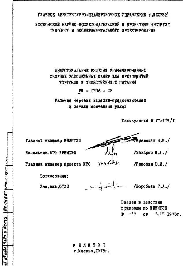 Шифр РМ-1336-02 Индустриальные изделия унифицированных сборных холодильных камер для предприятий торговли и общественного питания (1978 г.)