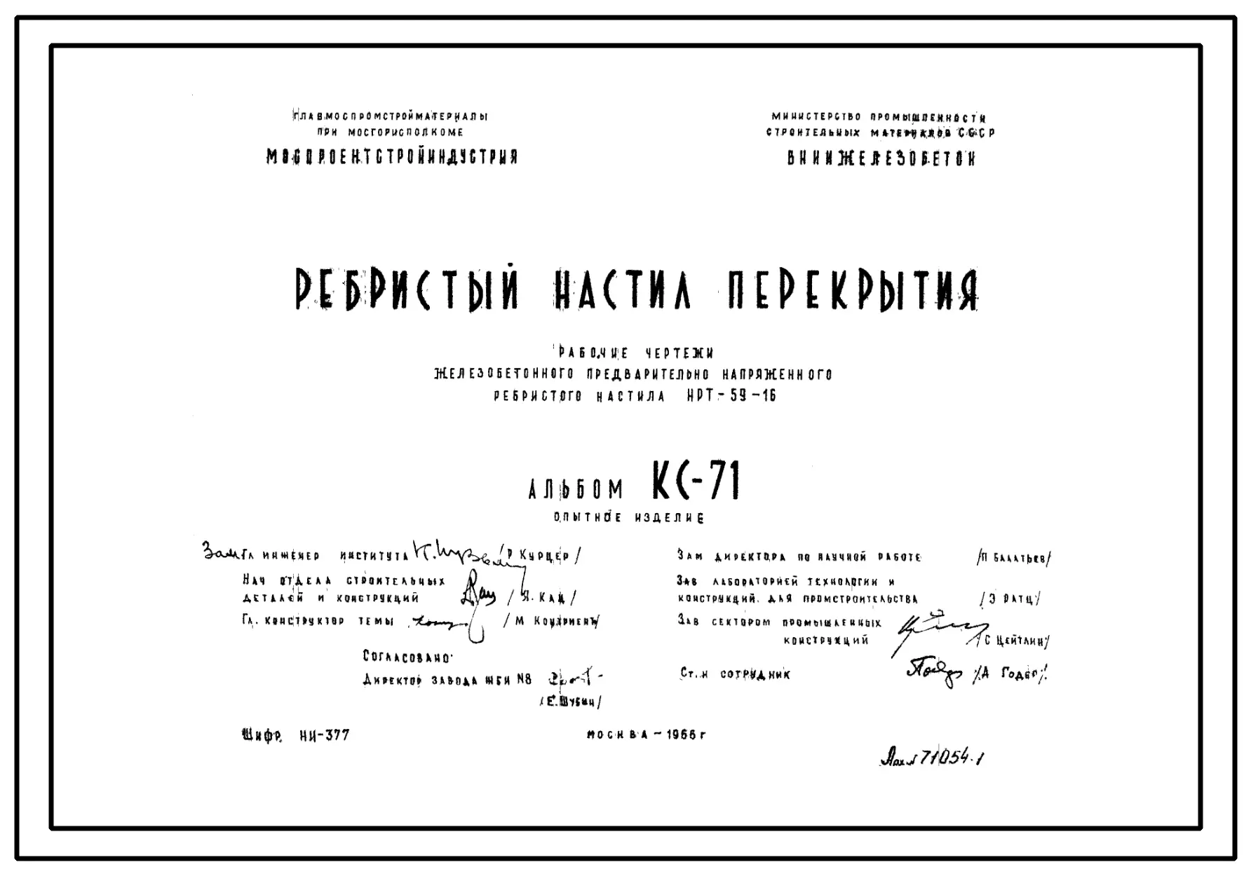 Шифр КС-71 Ребристый настил перекрытия НРТ-59-16 (1966 г.)