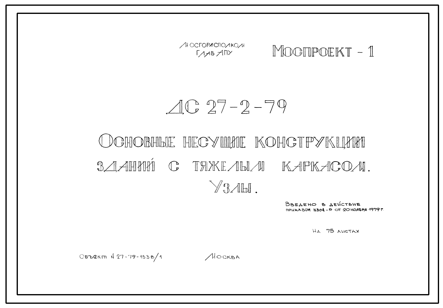 Шифр ДС-27-2-79 Основные несущие конструкции зданий с тяжелым каркасом. Узлы