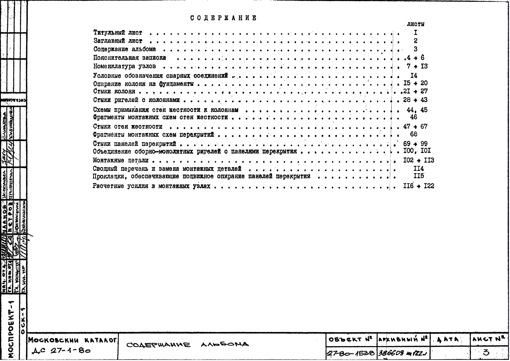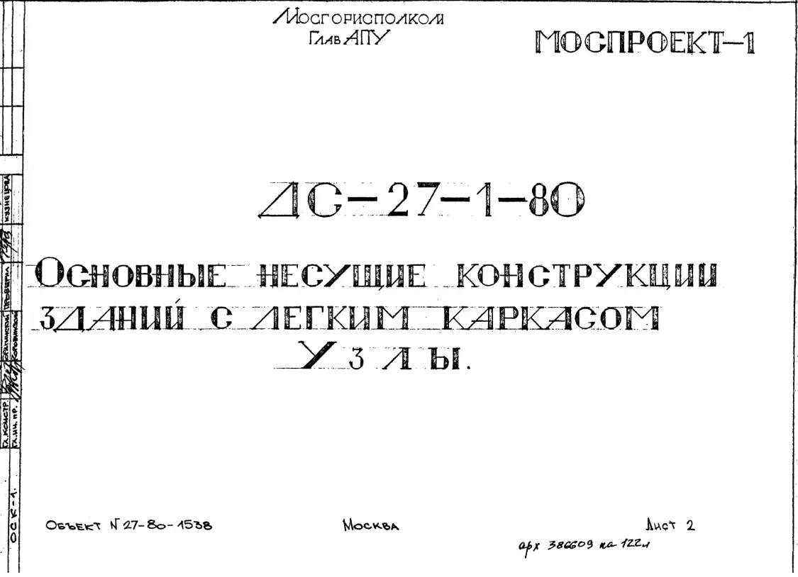 Шифр ДС 27-1-80 Основные несущие конструкции зданий с легким каркасом. Узлы