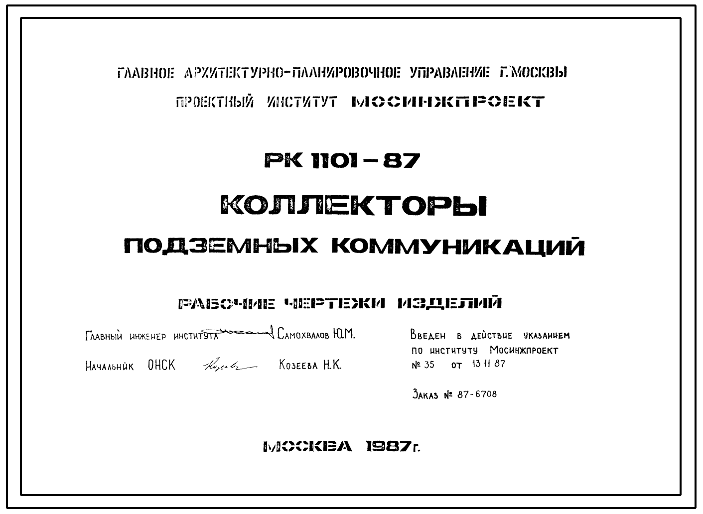 Шифр РК1101-87 Коллекторы подземных коммуникаций (1987 г.). Копия с оригинальных калек.