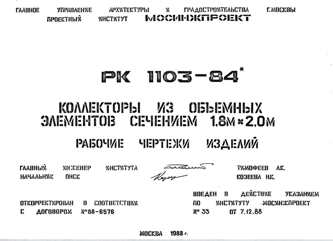 Шифр РК 1103-84 Коллекторы из объемных элементов сечением 1,8 м х 2,0 м (1988 г.)