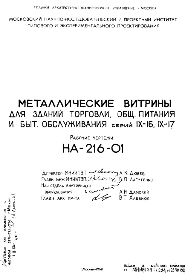Шифр НА-216-01 Металлические витрины для зданий торговли, обественного питания и бытового обслуживания серий IX-16; IX-17 (1968 г.)
