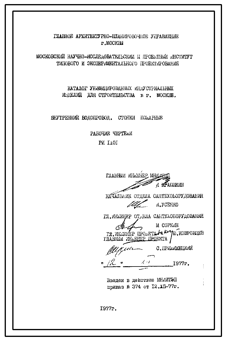 Шифр РИ 1101 Внутренний водопровод. Стояки пожарные (1977 г.)