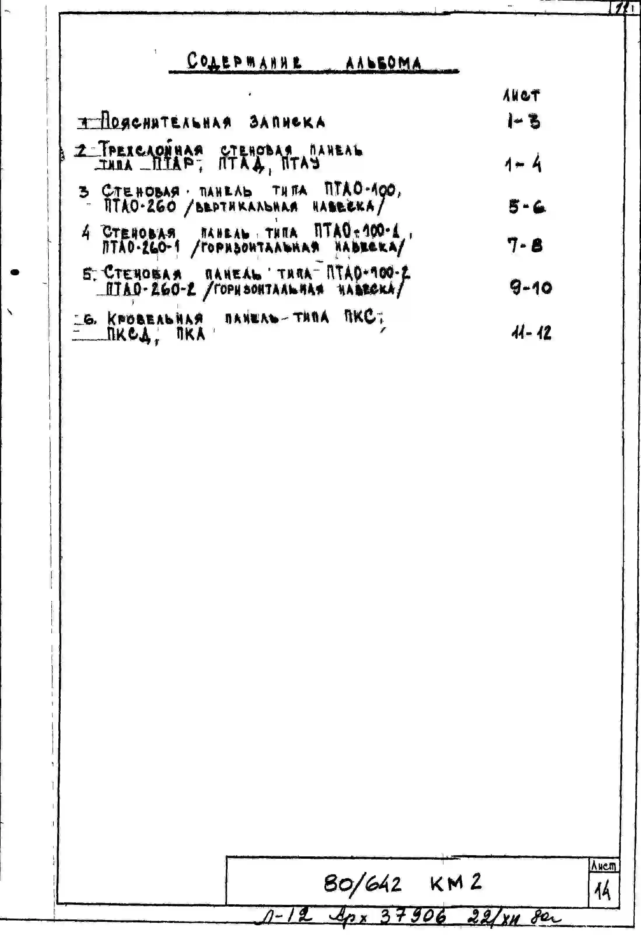 Шифр 80/642 Номенклатура трехслойных панелей для применения в Московском строительстве (подлежащих освоению в ГПО ММК в ХI пятилетке) (1980 г.)