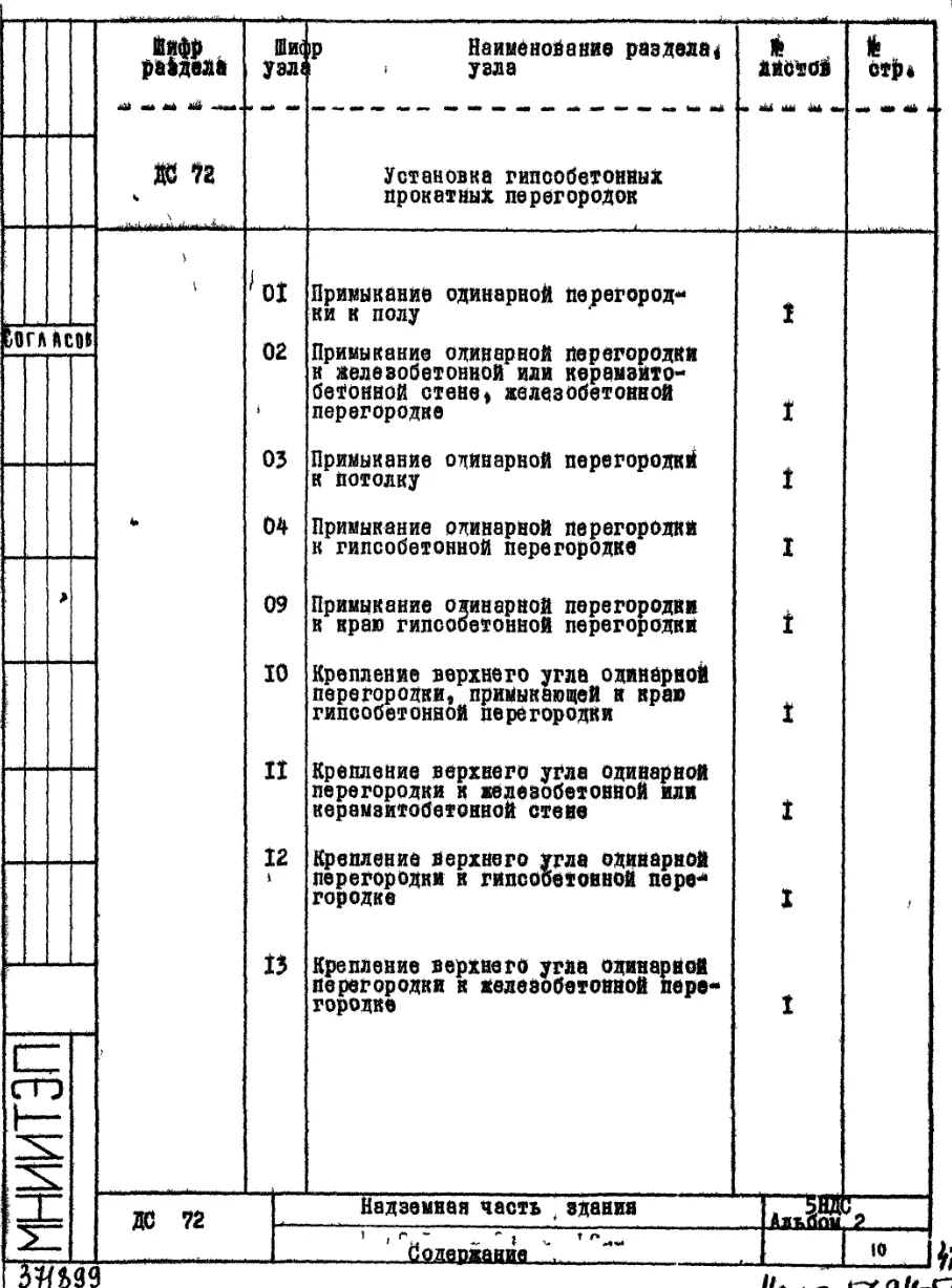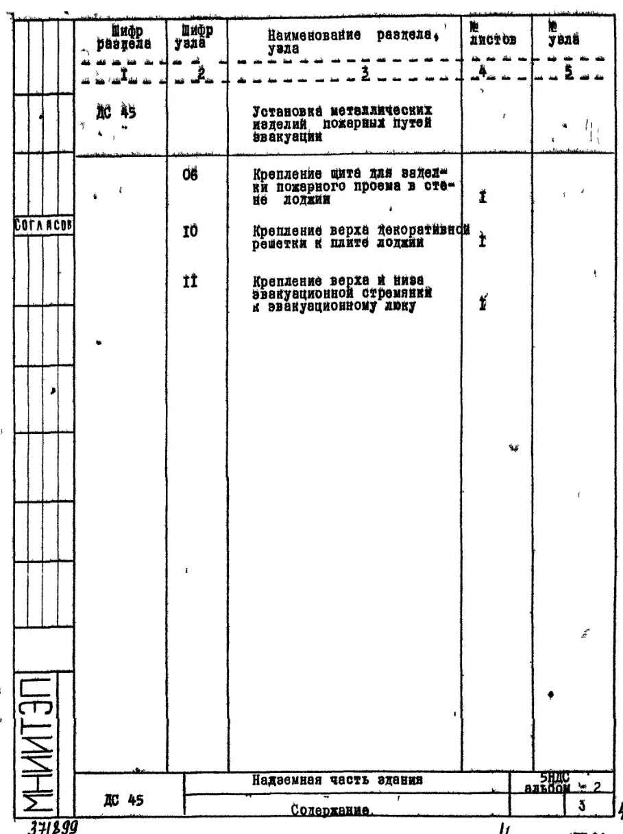 Шифр 5НДС Надземная часть здания. Детали узлов.