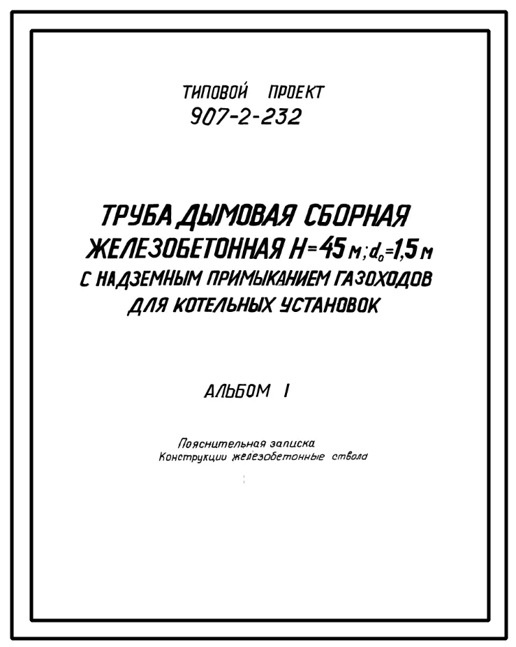 типовой проект 907-2-232 труба дымовая н=45м, д0=1,5 м с надземным примыканием газоходов для котельных установок. для 1-3 ветровых районов.