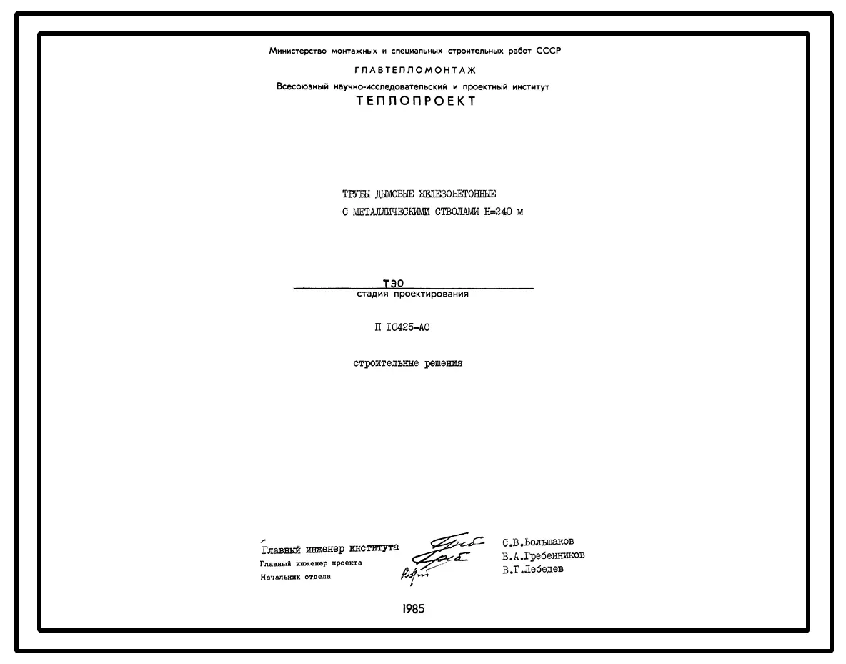 проект 10425 трубы дымовые железобетонные с металлическими стволами н=240 м.