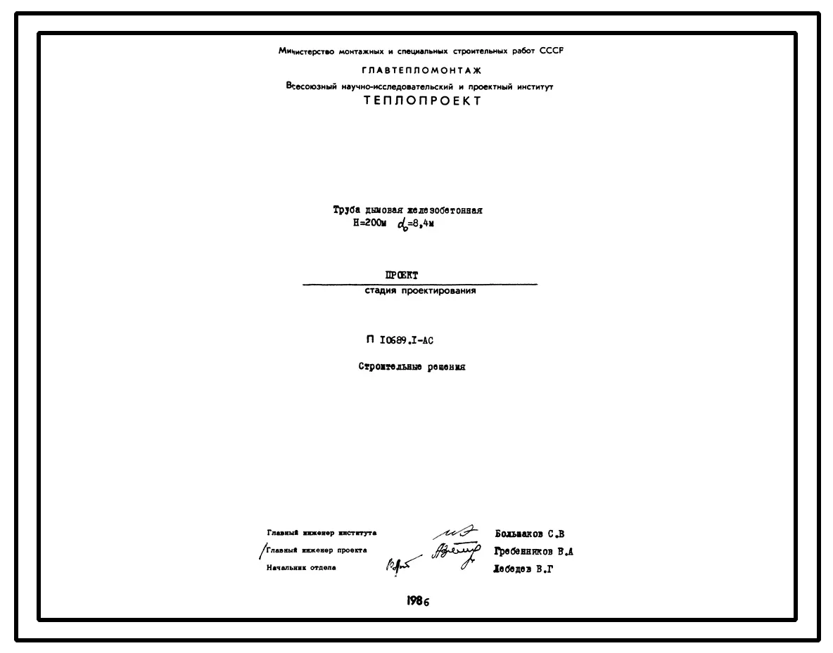 проект 10689 труба дымовая железобетонная н=200м, до=8,4м.
