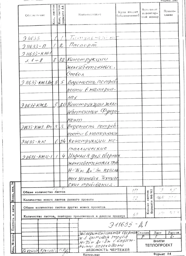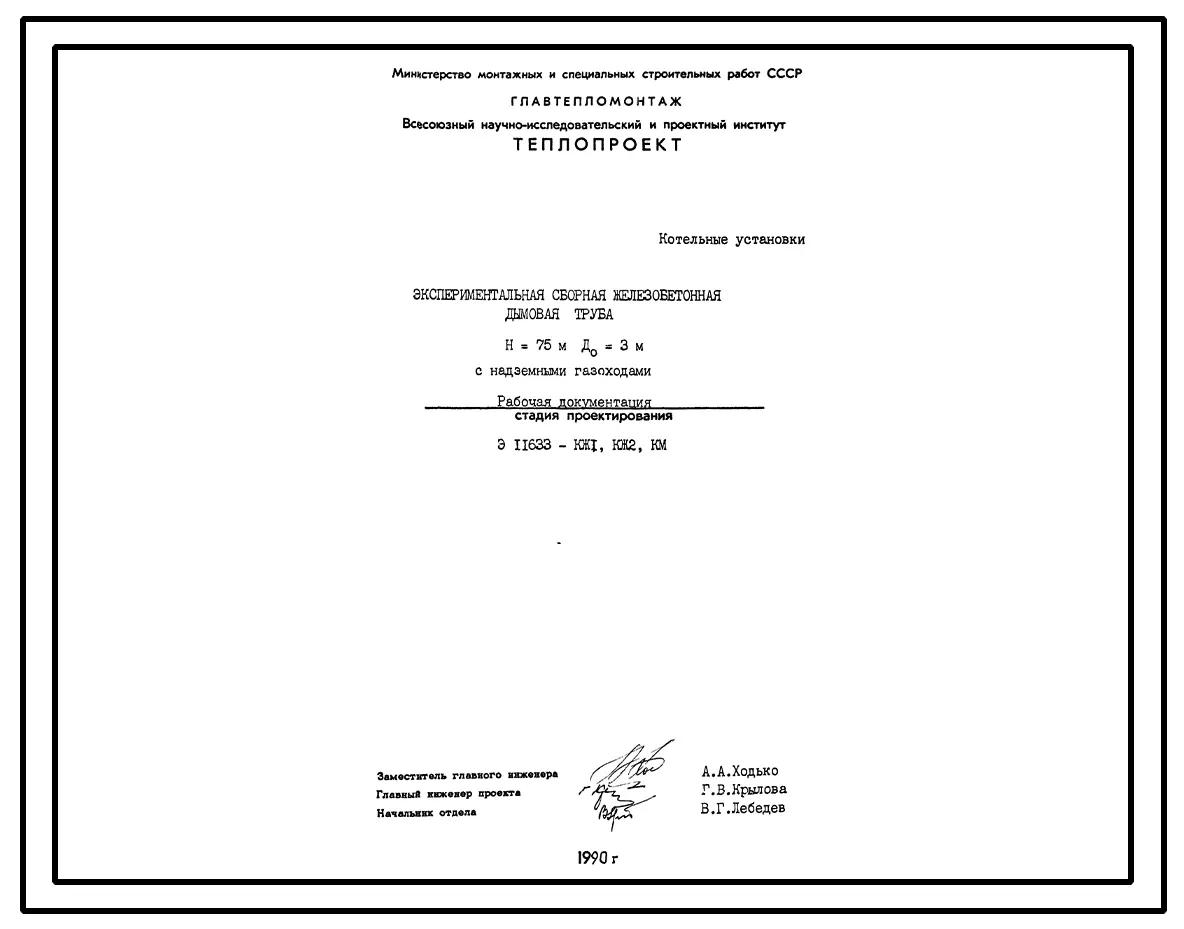 проект 11633 экспериментальная сборная железобетонная труба дымовая н=75 м до=3 м с надземными газоходами.