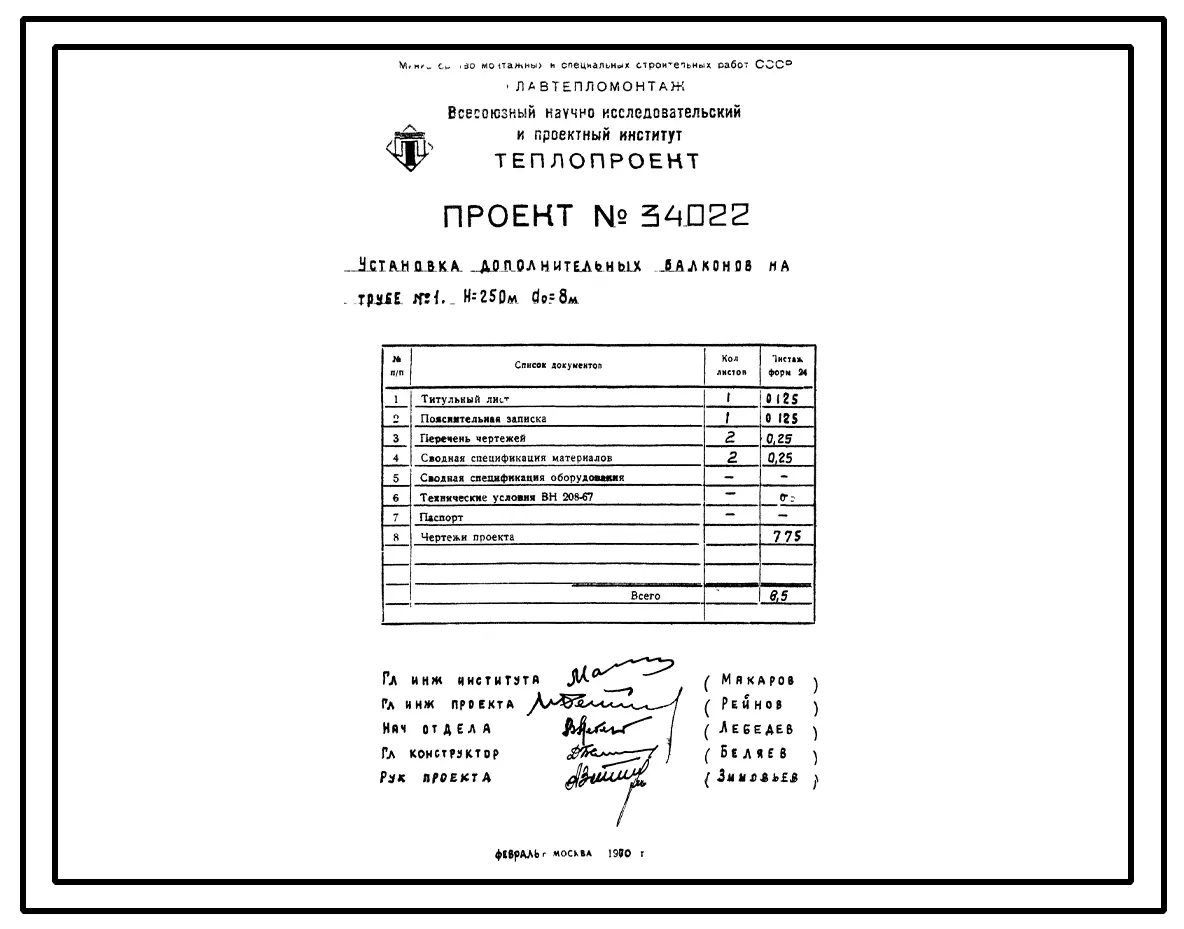 проект 34022 установка дополнительных балконов на трубе н=250 м, до=8,0 м.